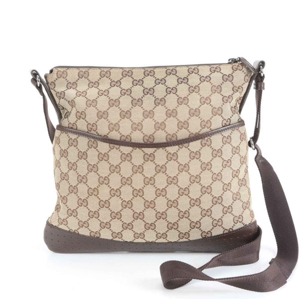 Gucci GG Canvas and Leather Messenger Shoulder Bag 145857 Brown Men\'s