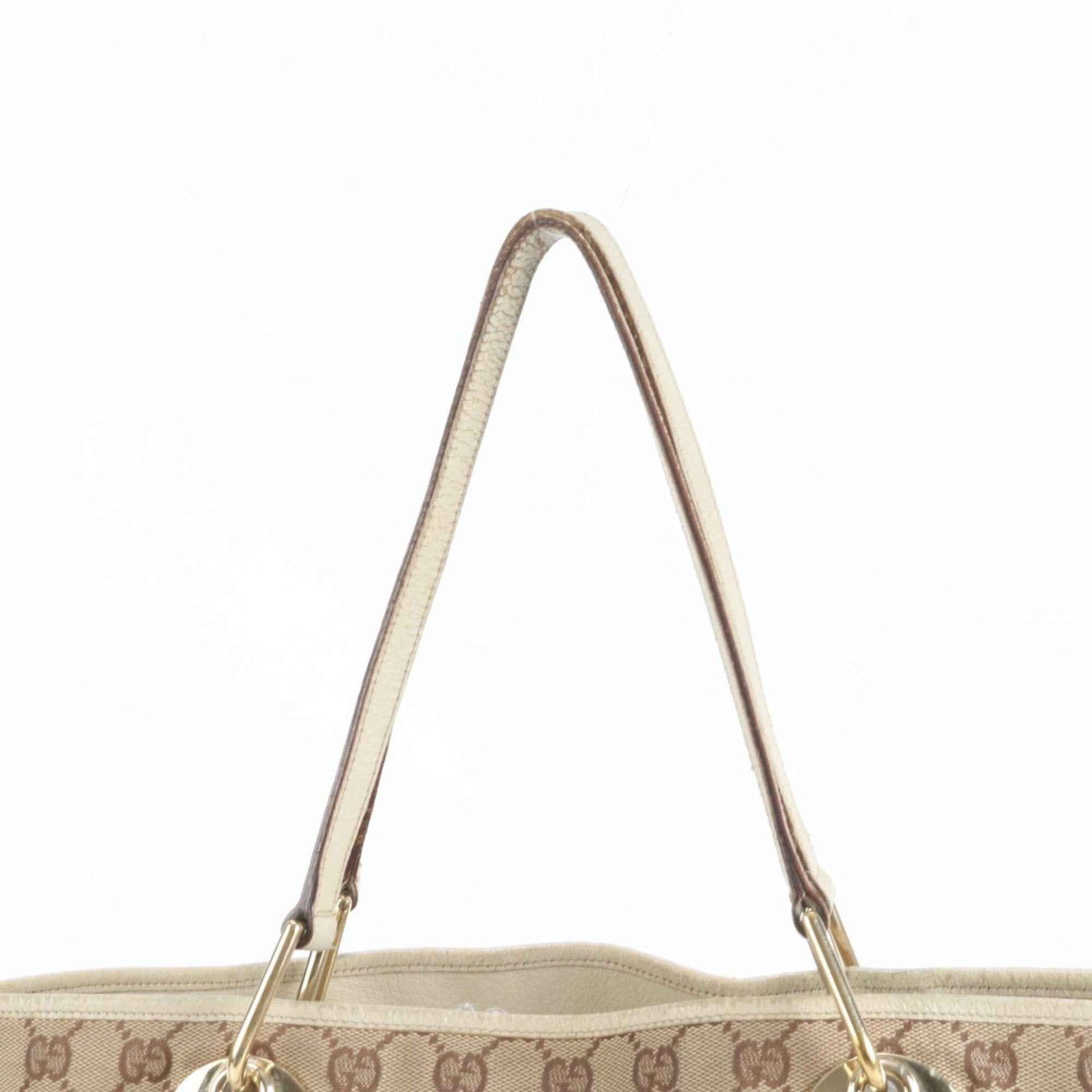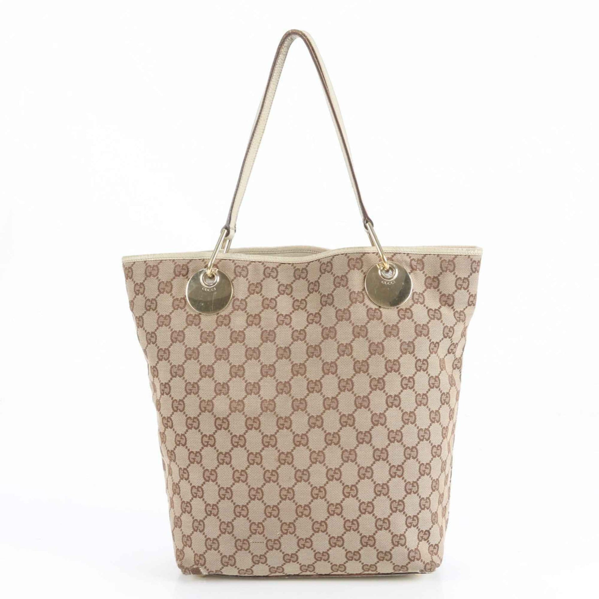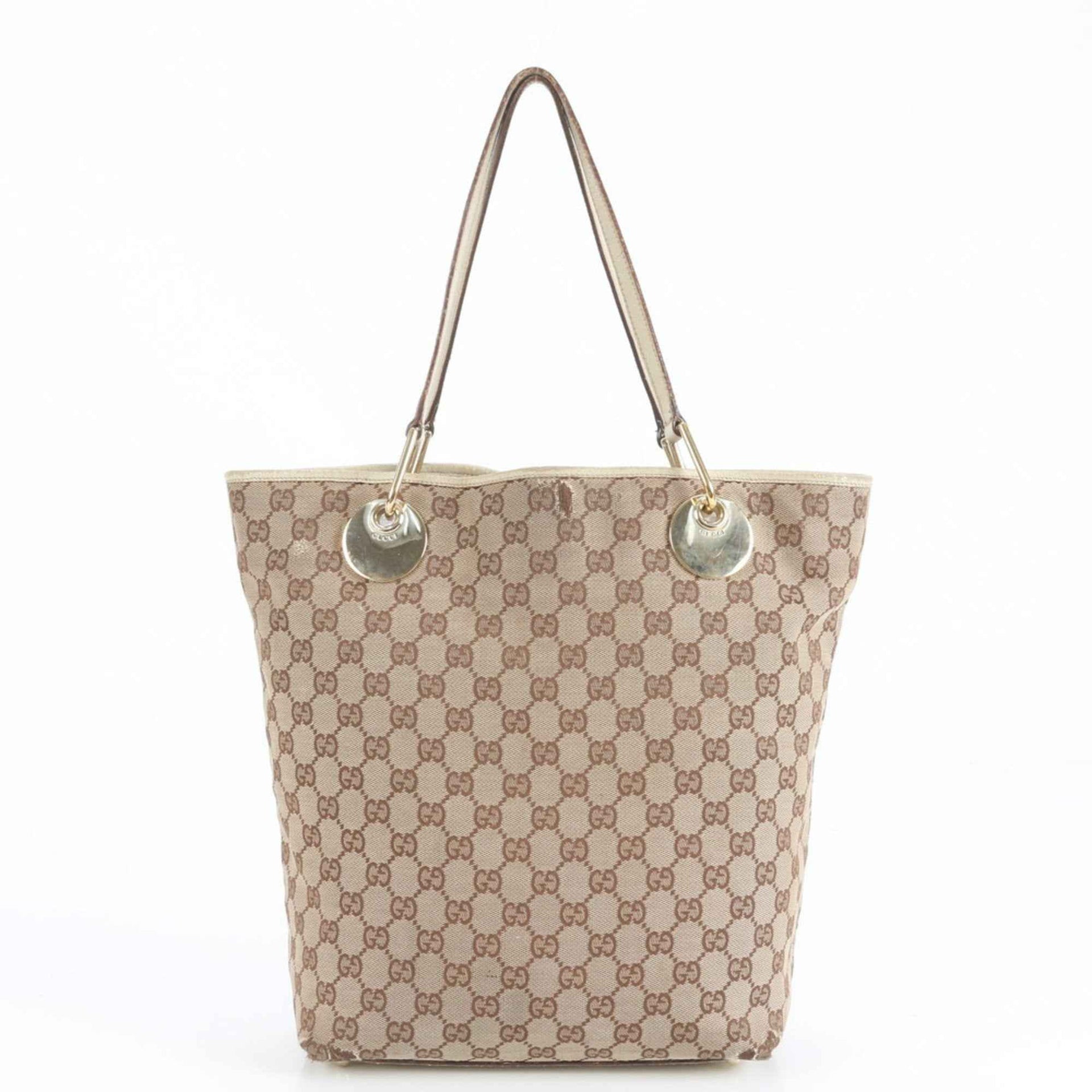 Gucci GG Canvas Eclipse Leather Tote Bag Shoulder 120836 Brown Women\'s