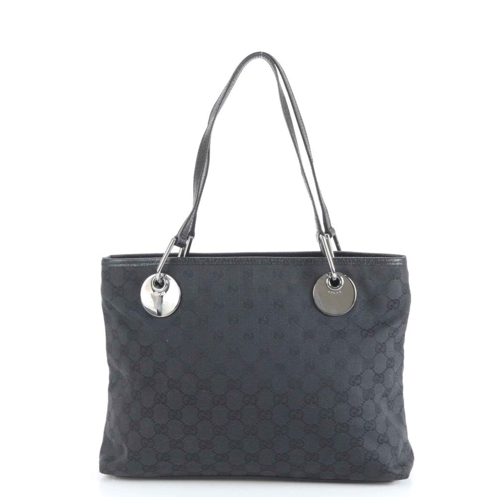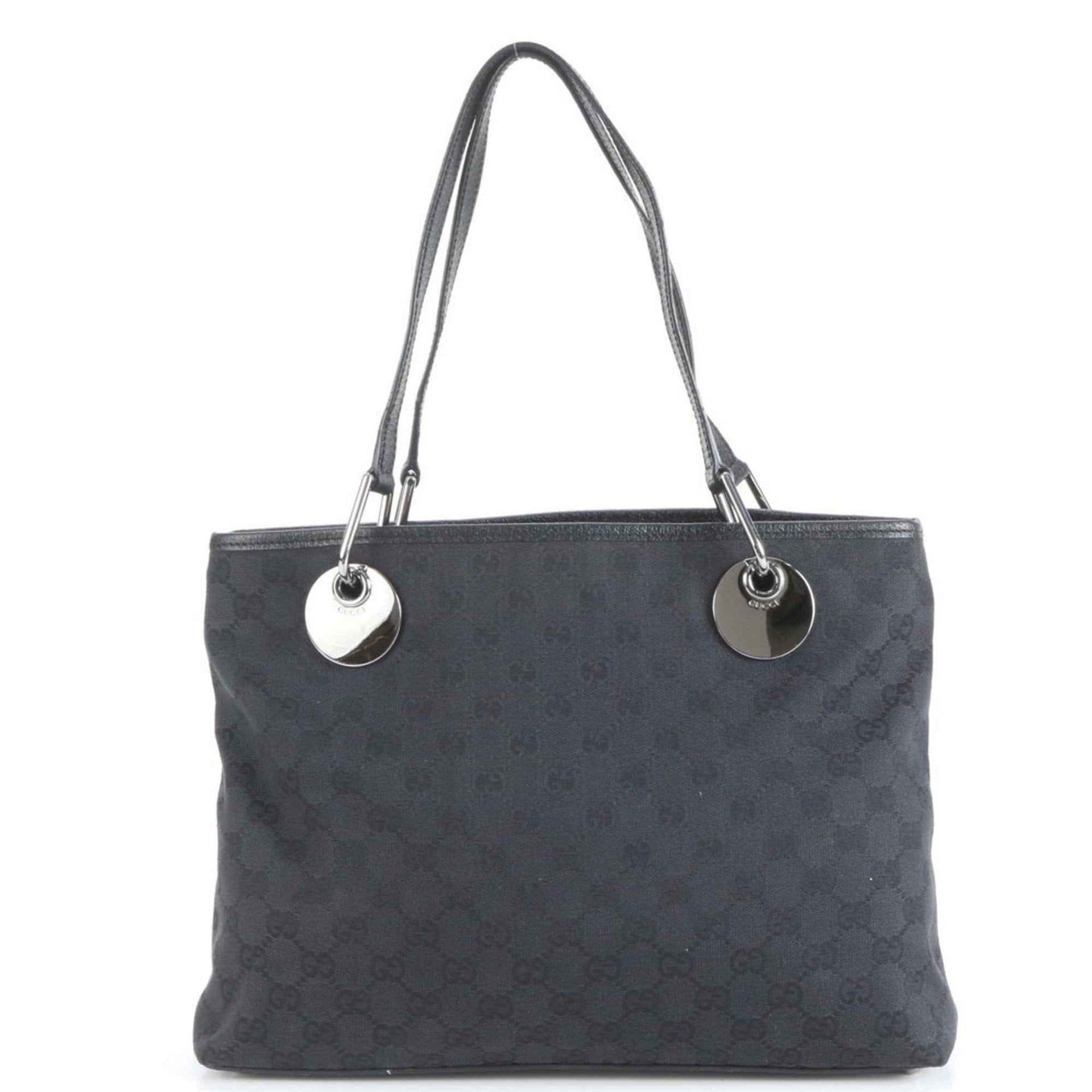 Gucci GG Canvas Eclipse Leather Tote Bag Shoulder 120837 Black Women\'s