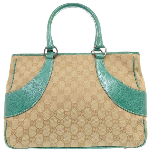 Gucci GG Canvas Handbag 113011 Tote Bag Leather Beige 0600 GUCCI