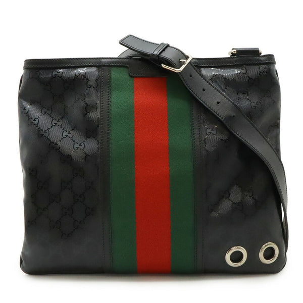 GUCCI GG Imprime Sherry Line FIAT 500 Collaboration Shoulder Bag in PVC and Leather, Black, 269379