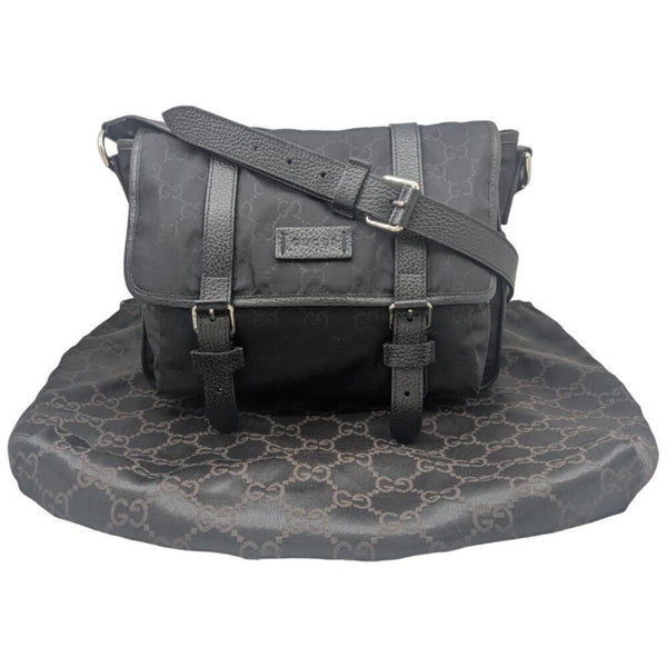 GUCCI GG pattern shoulder bag in nylon and leather, black, 510335, for men women.
