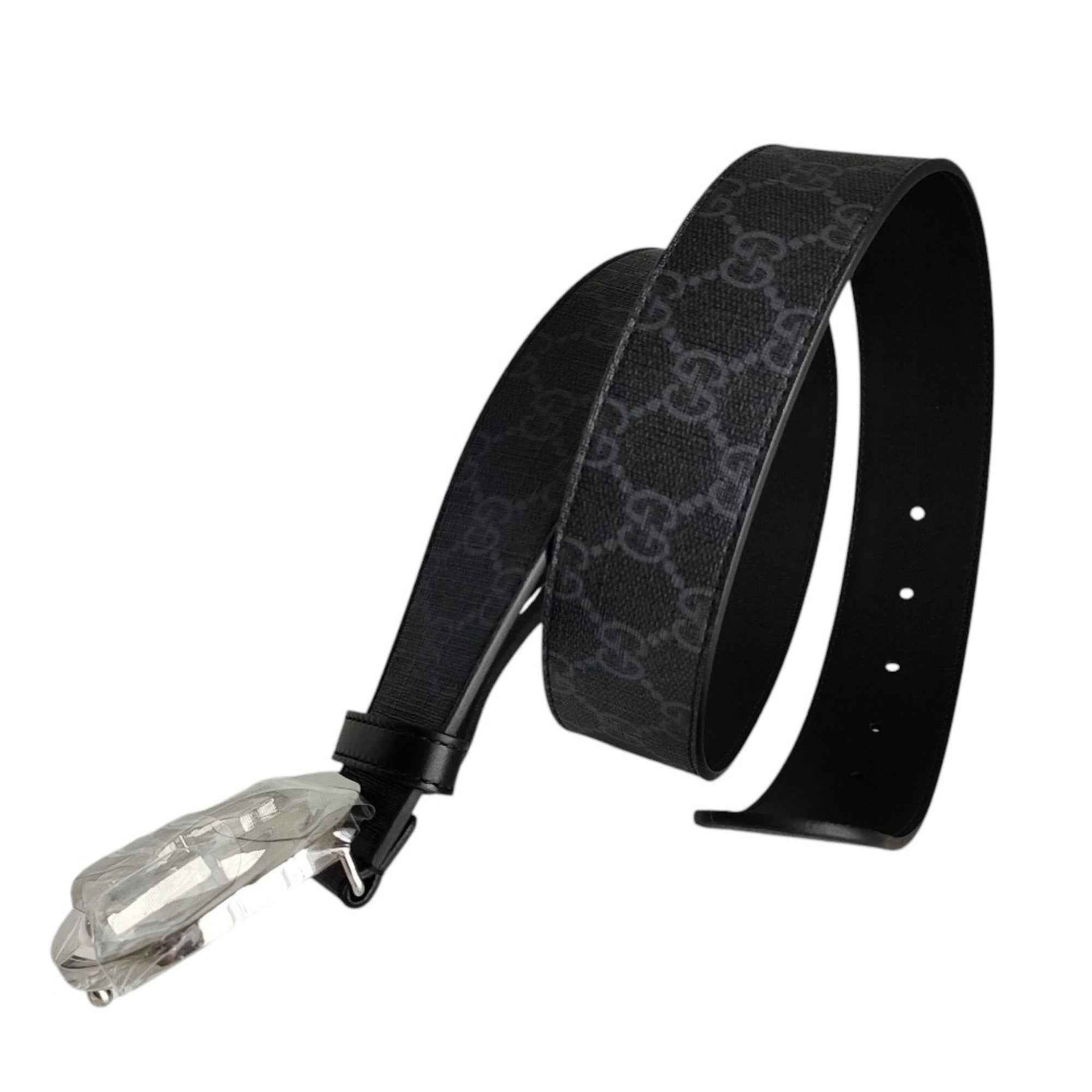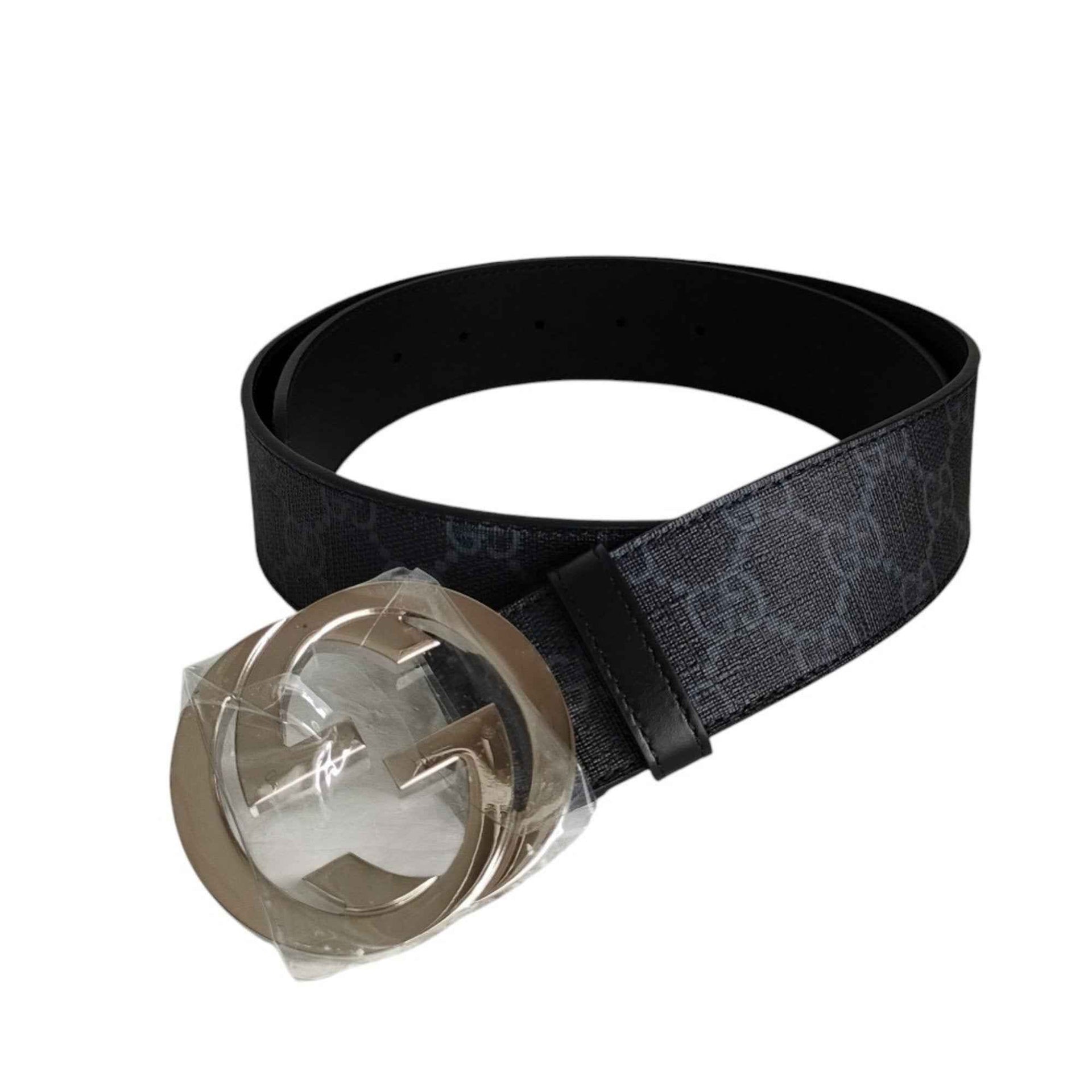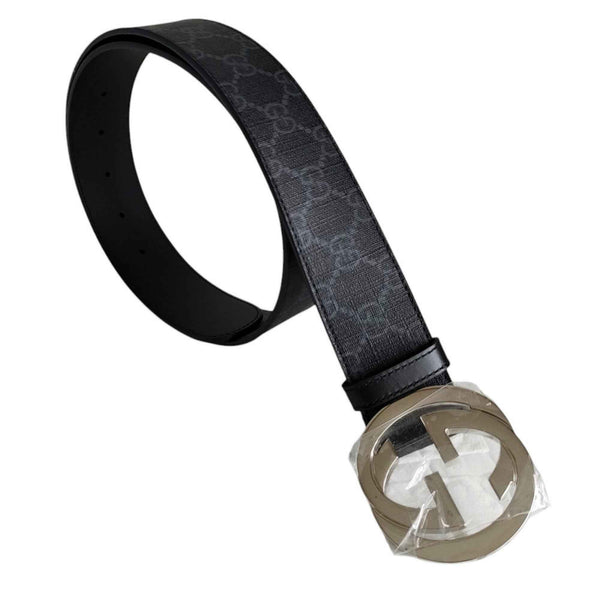 GUCCI GG Supreme Interlocking Buckle Leather Belt 411924 Black Men\'s