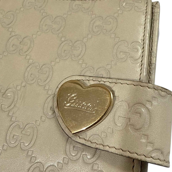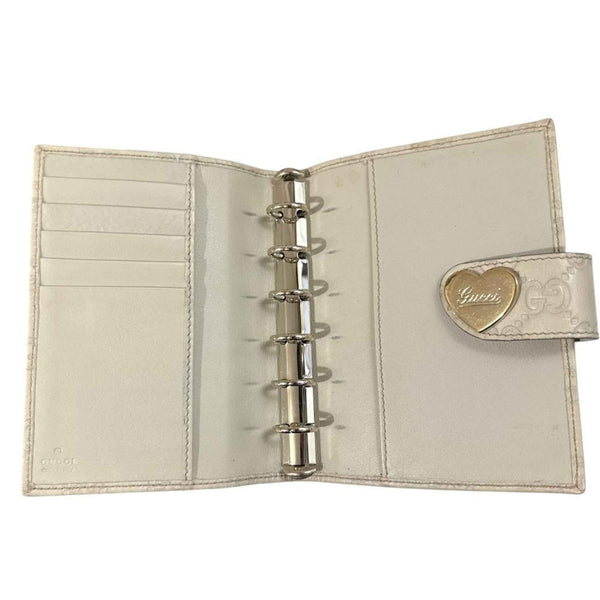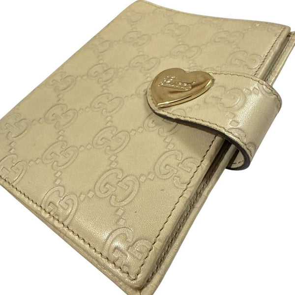 GUCCI Gucci Shima Leather GG Pattern Heart Agenda Cover, Ivory, Women\'s