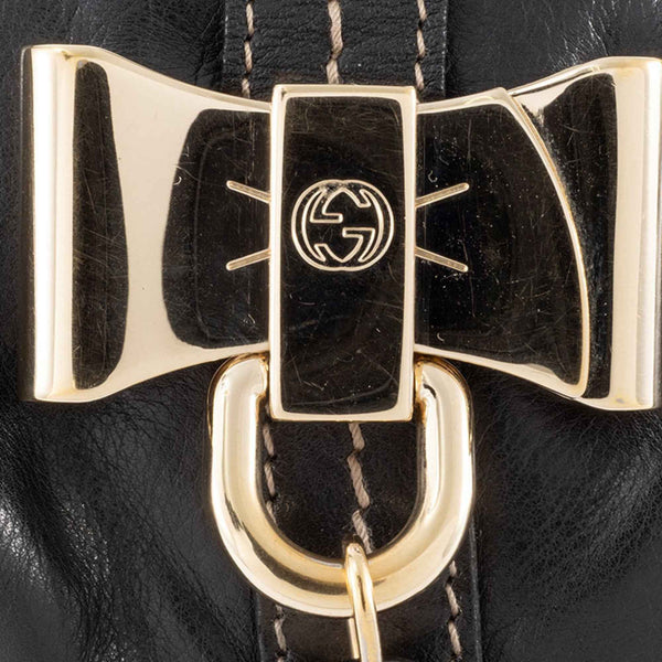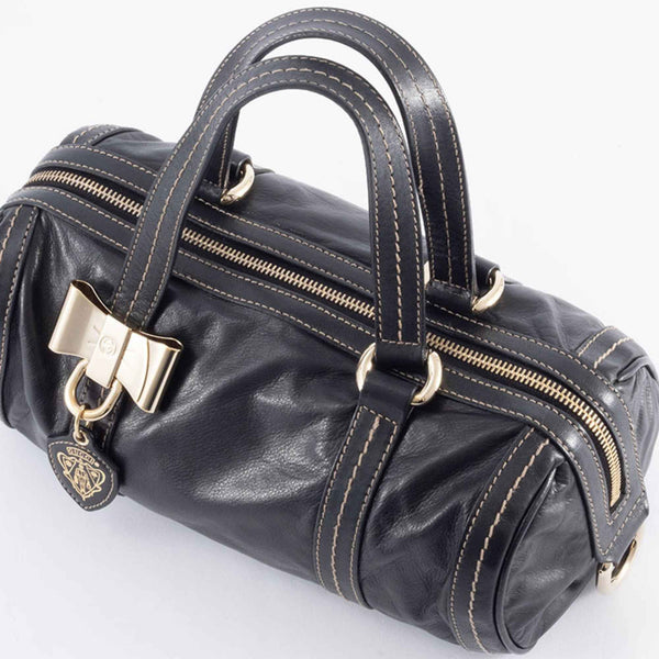 Gucci Leather Mini Boston Bag 181485 Black Women\'s Hand Ribbon Hysteria GUCCI