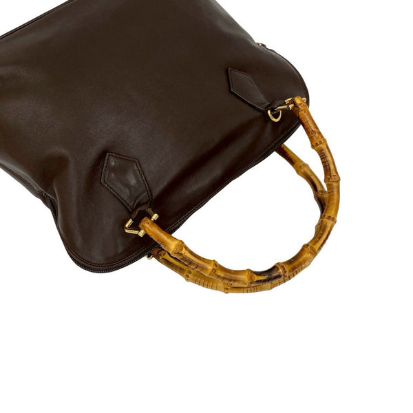 GUCCI Old Gucci Bamboo Leather 2-Way Handbag, Boston Bag, Shoulder Brown 28272