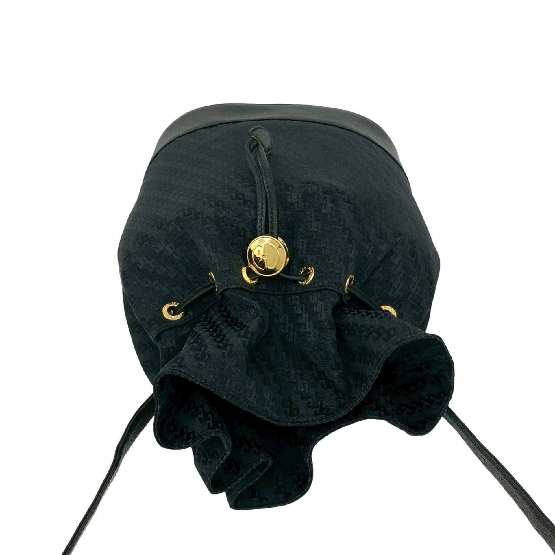 GUCCI Old Gucci GG Logo Canvas and Leather Drawstring Shoulder Bag Black 29791