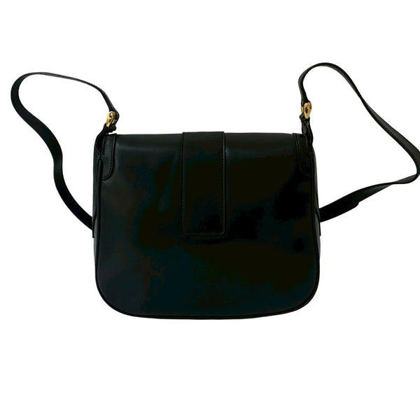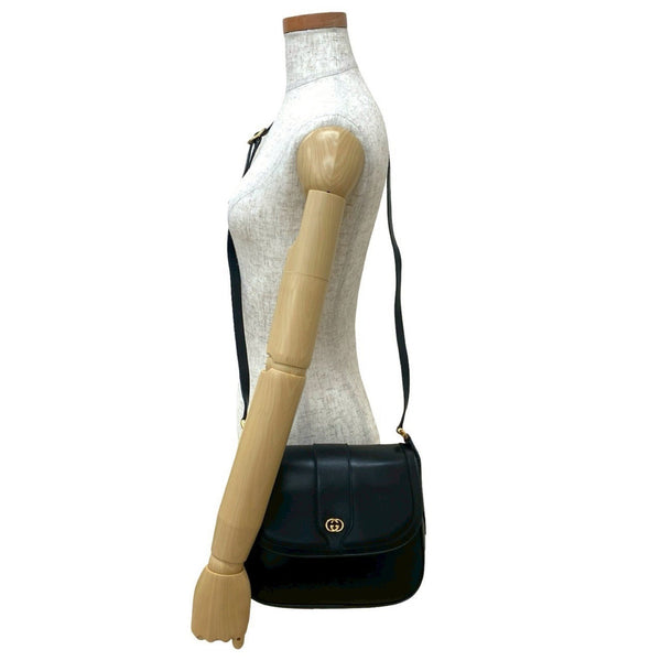 GUCCI Old Gucci GG Logo Hardware Leather Genuine Shoulder Bag Pochette Sacoche Black 19851