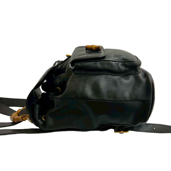 GUCCI Old Gucci Vintage Bamboo Leather Drawstring Backpack/Daypack, Black, 35356