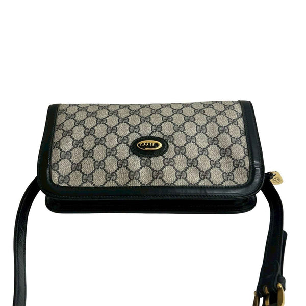 GUCCI Old Gucci Vintage GG Logo Leather Shoulder Bag/Pochette/Sacoche in Navy Blue 19817