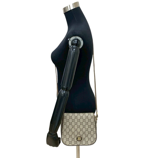 GUCCI Old Gucci Vintage Plus Logo Leather Mini Shoulder Bag Pochette Brown 331-1