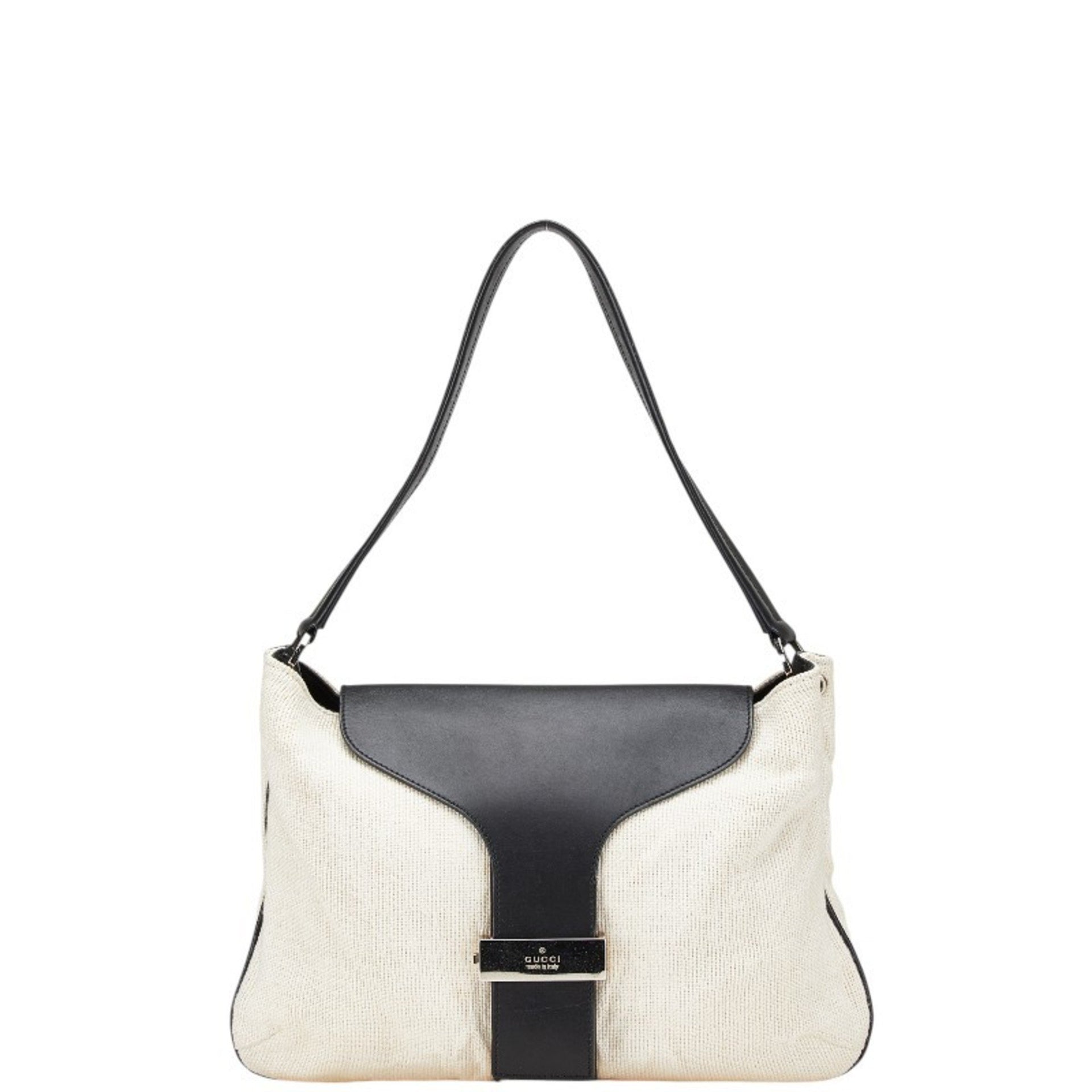 Gucci One-Shoulder Bag Handbag 001 4035 001553 Ivory Black Canvas Leather Women\'s GUCCI