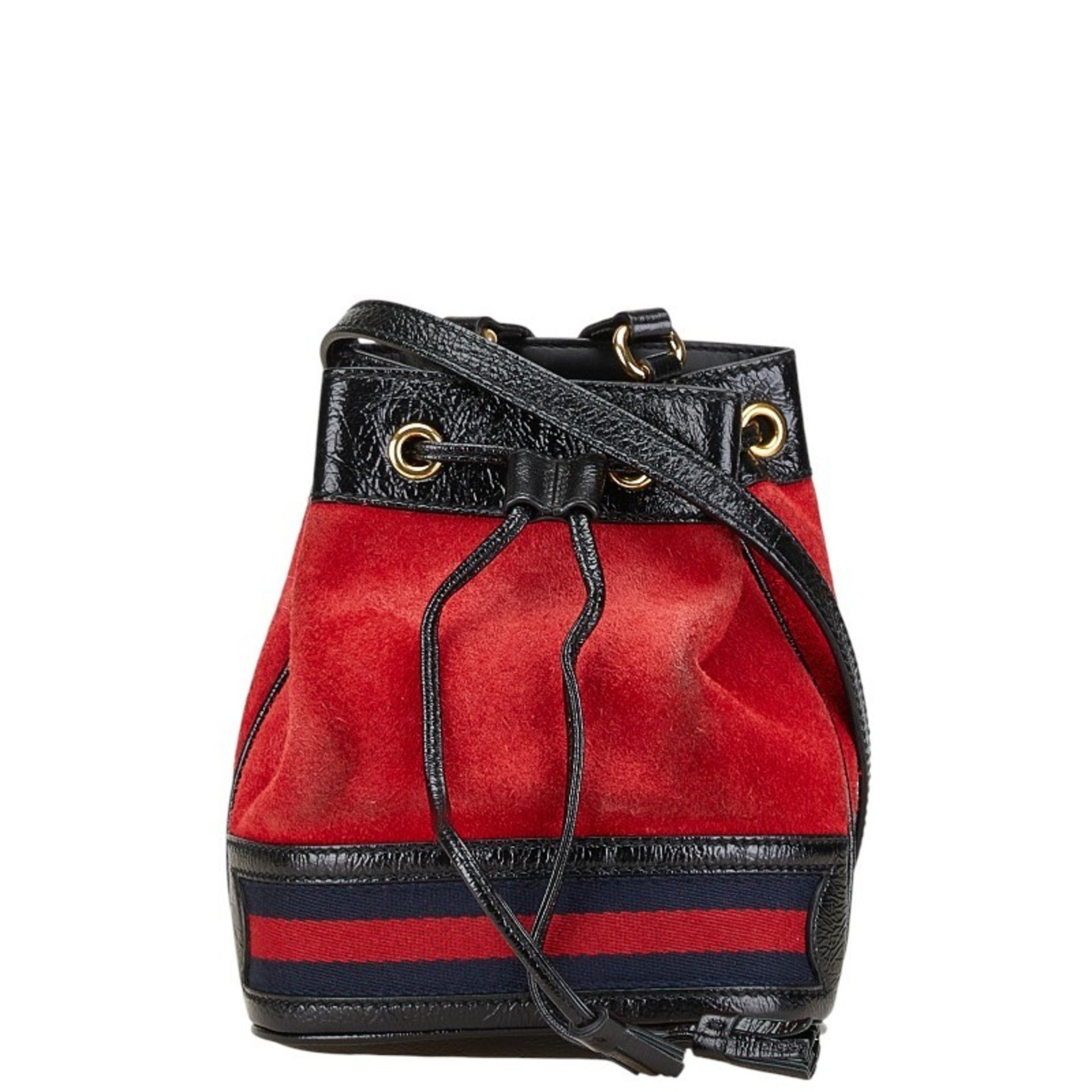 Gucci Sherry Line Mini Bucket Crossbody Shoulder Bag with Drawstring, 550620, Red and Black Suede Leather, Women\'s