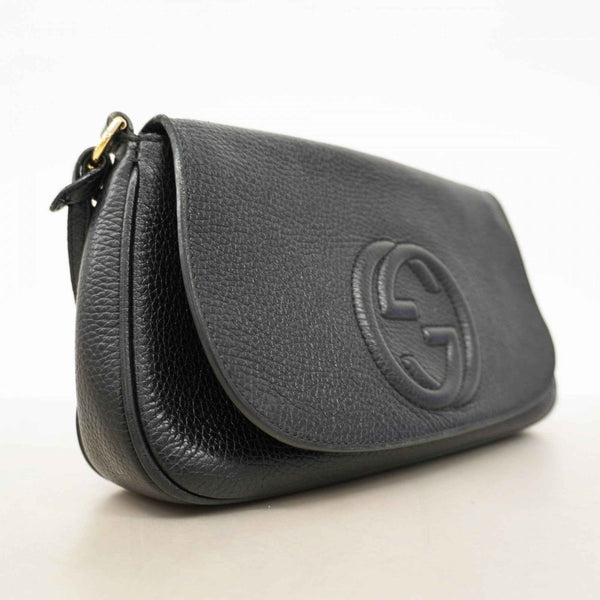 Gucci Soho Interlocking G Shoulder Bag 5363224 Leather Black Champagne Women\'s P1630305