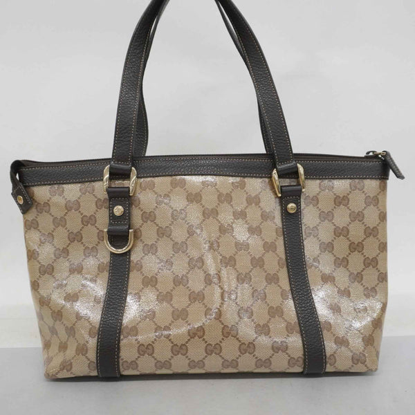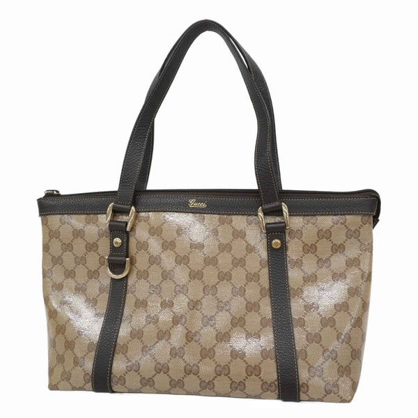 Gucci Tote Bag GG Crystal Abbey 268640 Coated Canvas Beige Brown Champagne Women\'s