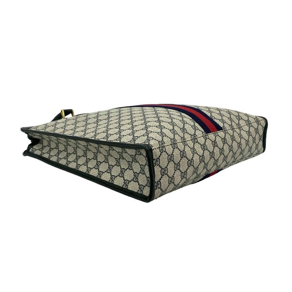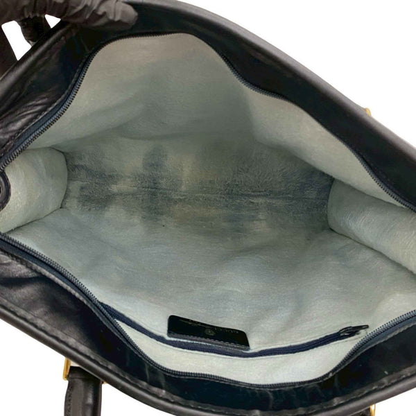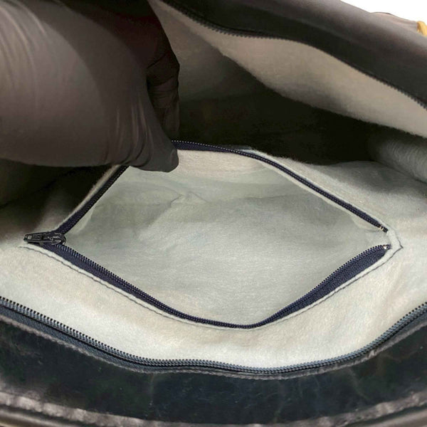 GUCCI Vintage Sherry Line GG Logo Hardware Leather Handbag Tote Bag Navy 222-3