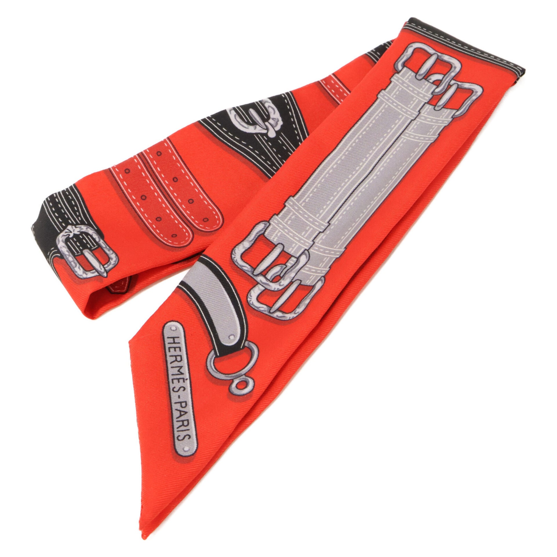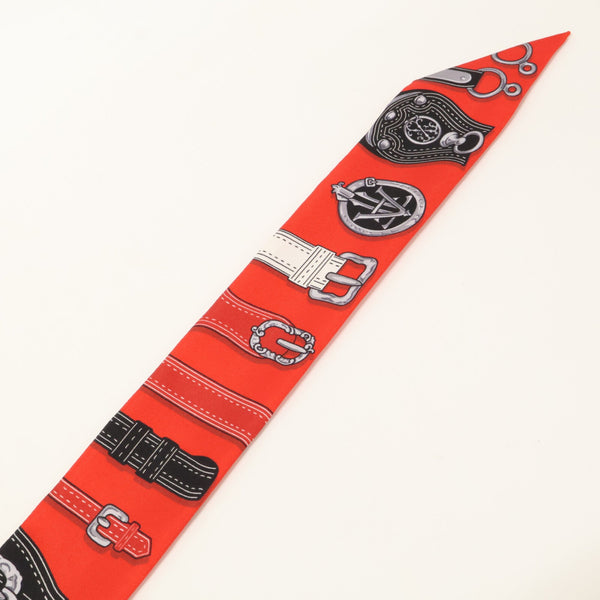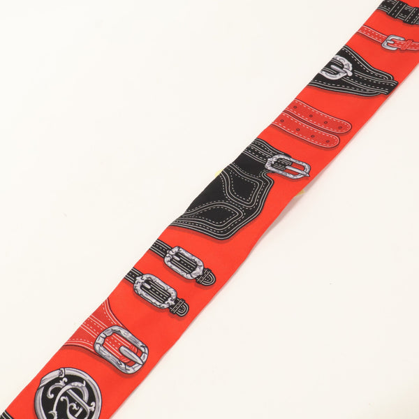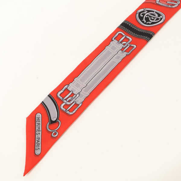 HERMES 061443S-09 HARNAIS DES PRESIDENTS Presidential Horse Harness Silk Twilly Scarf 09 ROUGE NOIR GRIS Women\'s