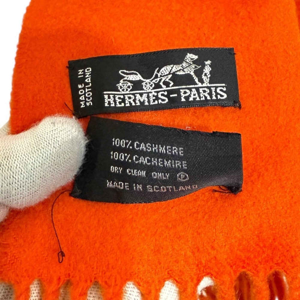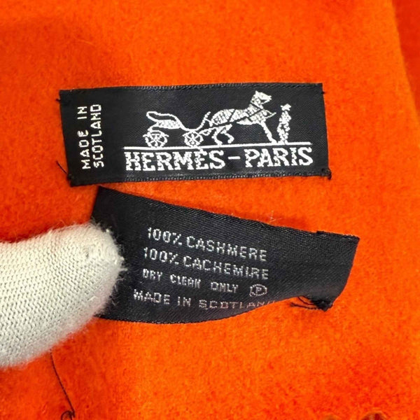 HERMES 100% Cashmere Fringe Large Scarf/Shawl Orange Men\'s/Women\'s