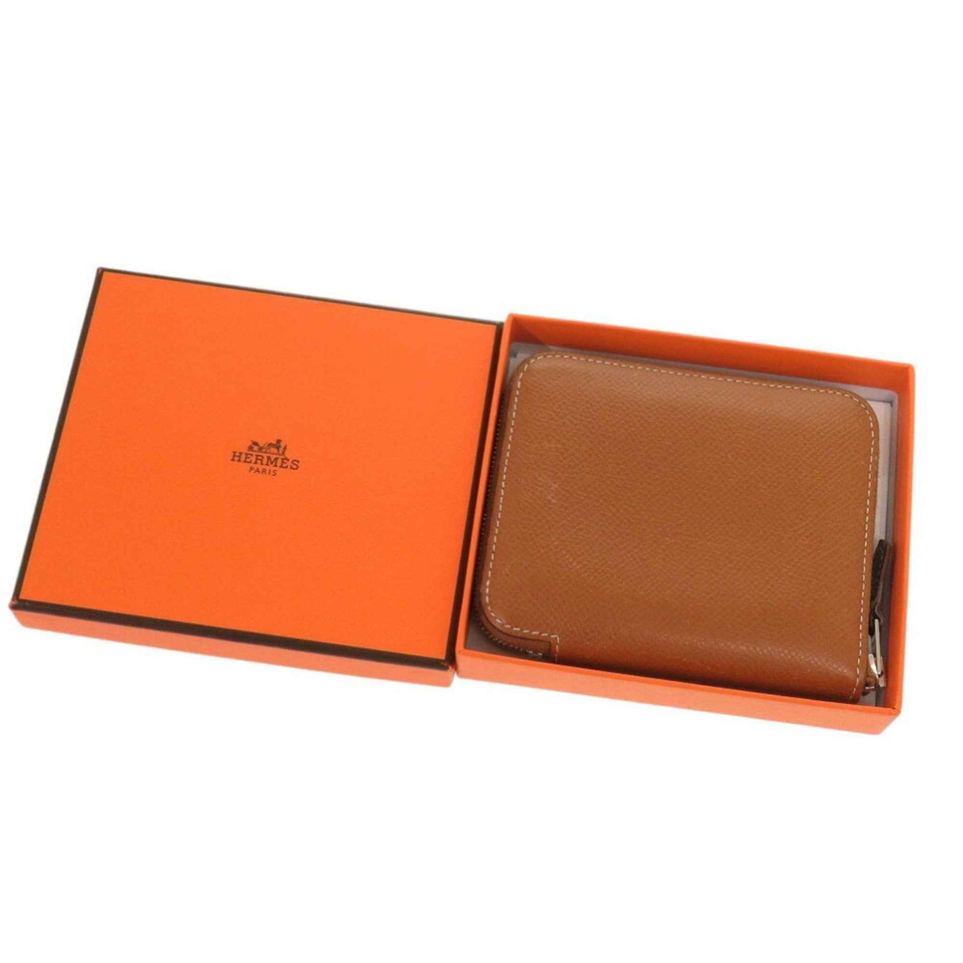 Hermès Azap Silkin Compact Coin Case, Brown, Epsom Leather, Gold, Z Stamp, 0335HERMES