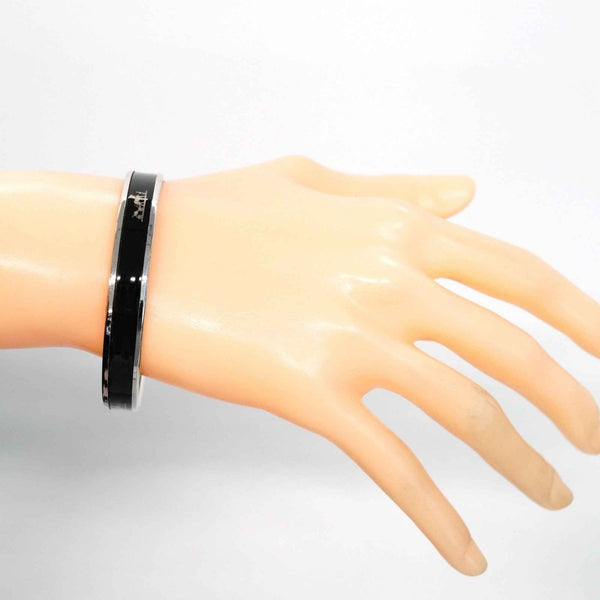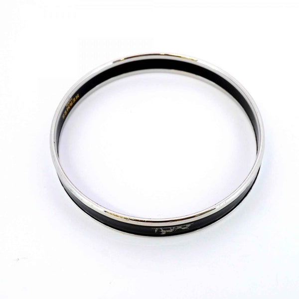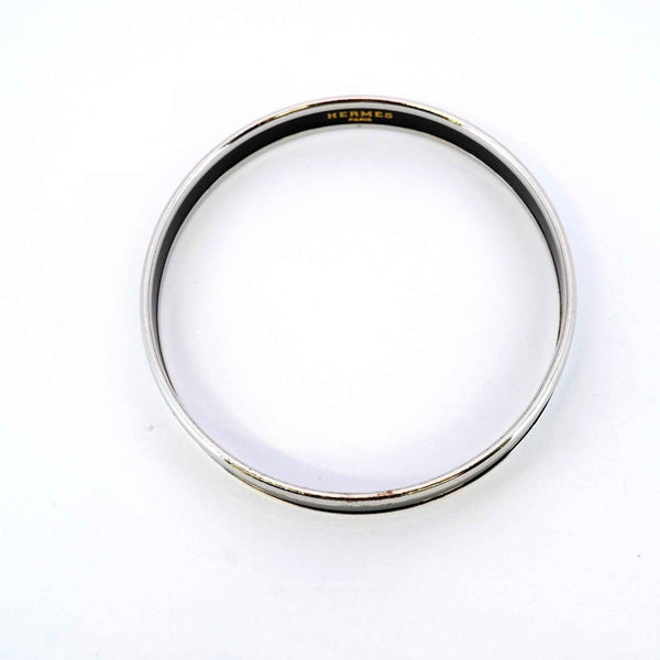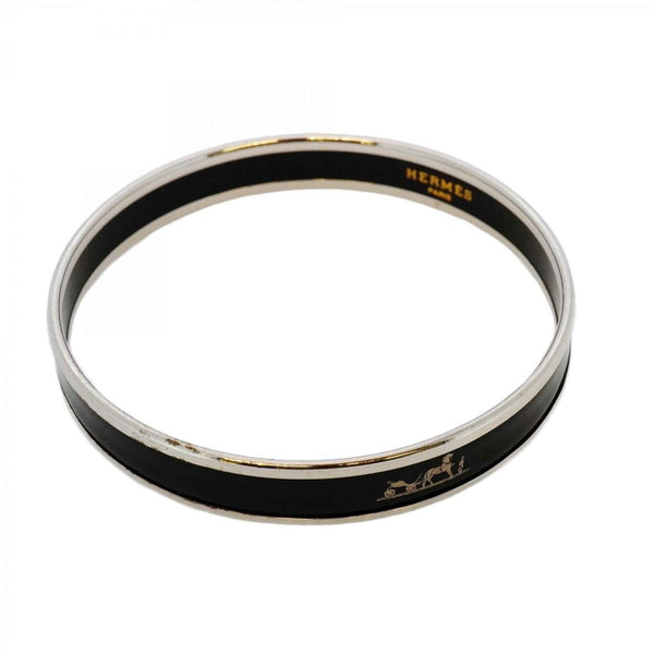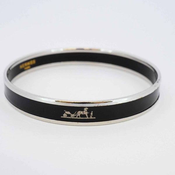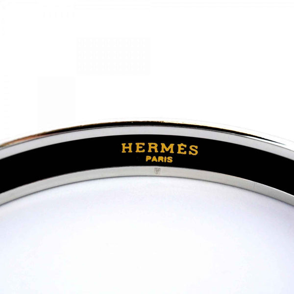 Hermes Bangle, Enamel PM, GP Plated, Cloisonne, Silver, Black, Women\'s