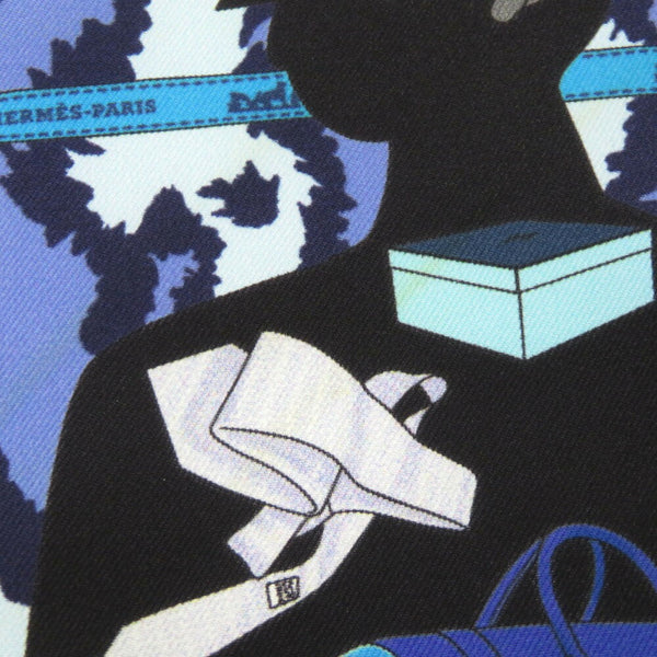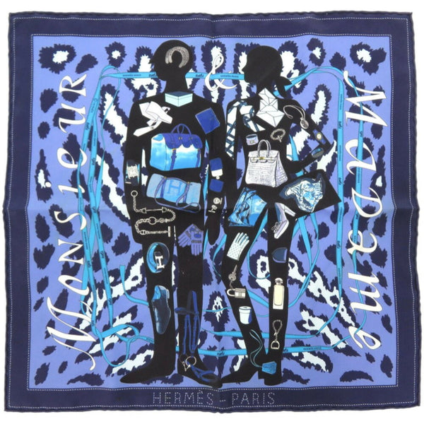 Hermes Carré 40 MONSIEUR ET MADAME Monsieur & Madame Silk Blue Scarf Muffler 0821HERMES