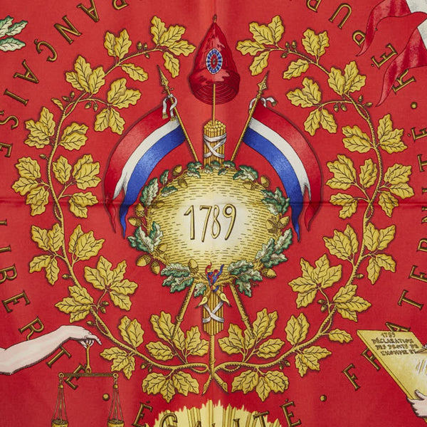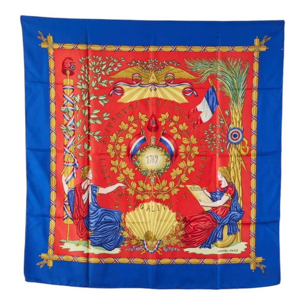 Hermes Carré 90 1789 LIBERTE EGALITE FRATERNITE REPUBLIQUE FRANCAISE Scarf muffler in commemoration of the French Revolution, blue, multi-colored, silk, for women, HERMES