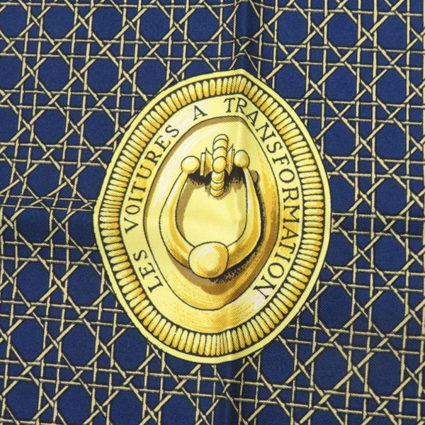 Hermès Carré 90 \"Les Voitures a Transformation\" Folding Covered Wagon Silk Blue Scarf Muffler 0117 HERMES
