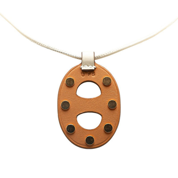 Hermes Chaine d\'Ancre PM Stud Necklace Beige Brown Swift Leather Women\'s HERMES