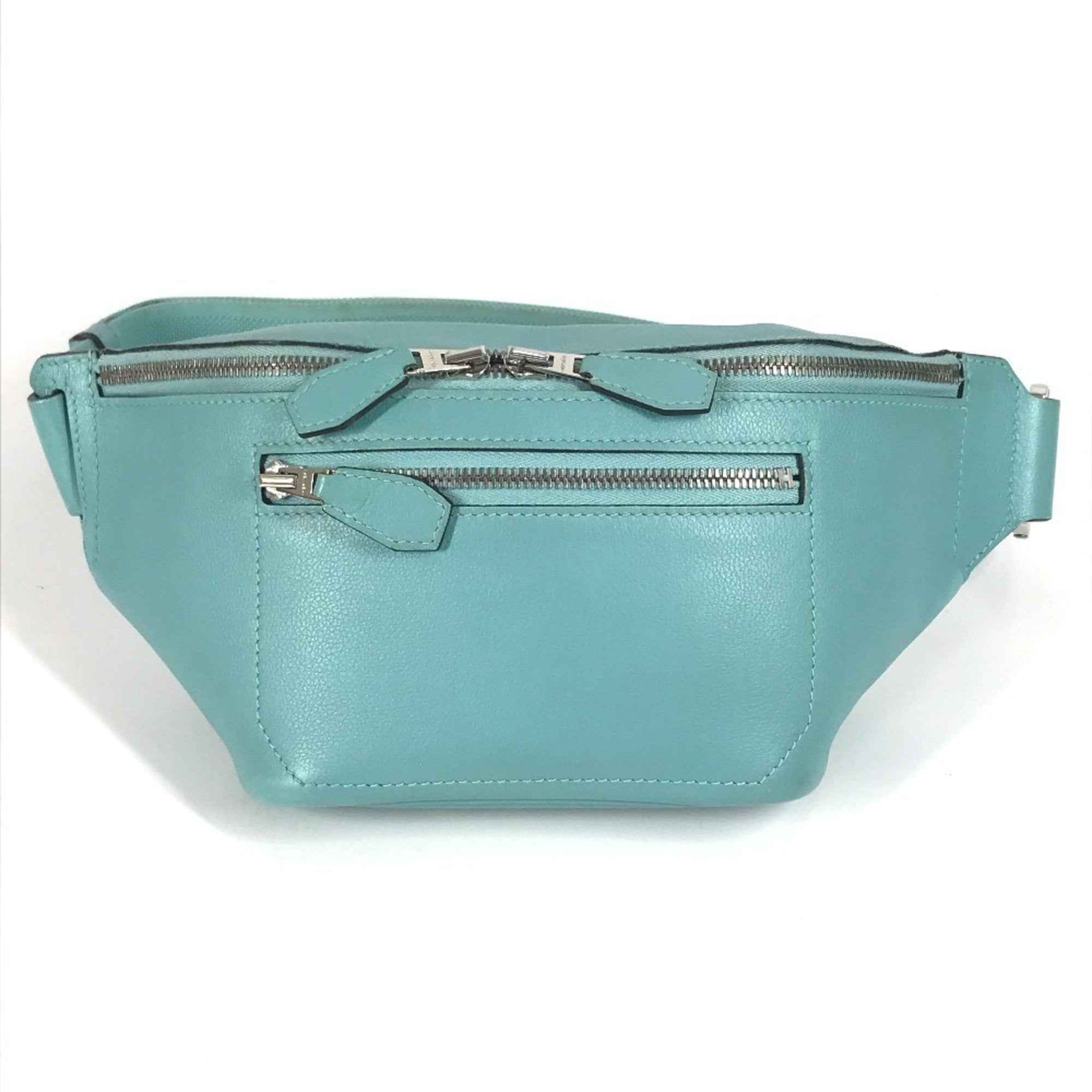 HERMES City Slide Cross PM Shoulder Bag, Waist Belt Crossbody Evercolor, Men\'s, Blue Atoll,