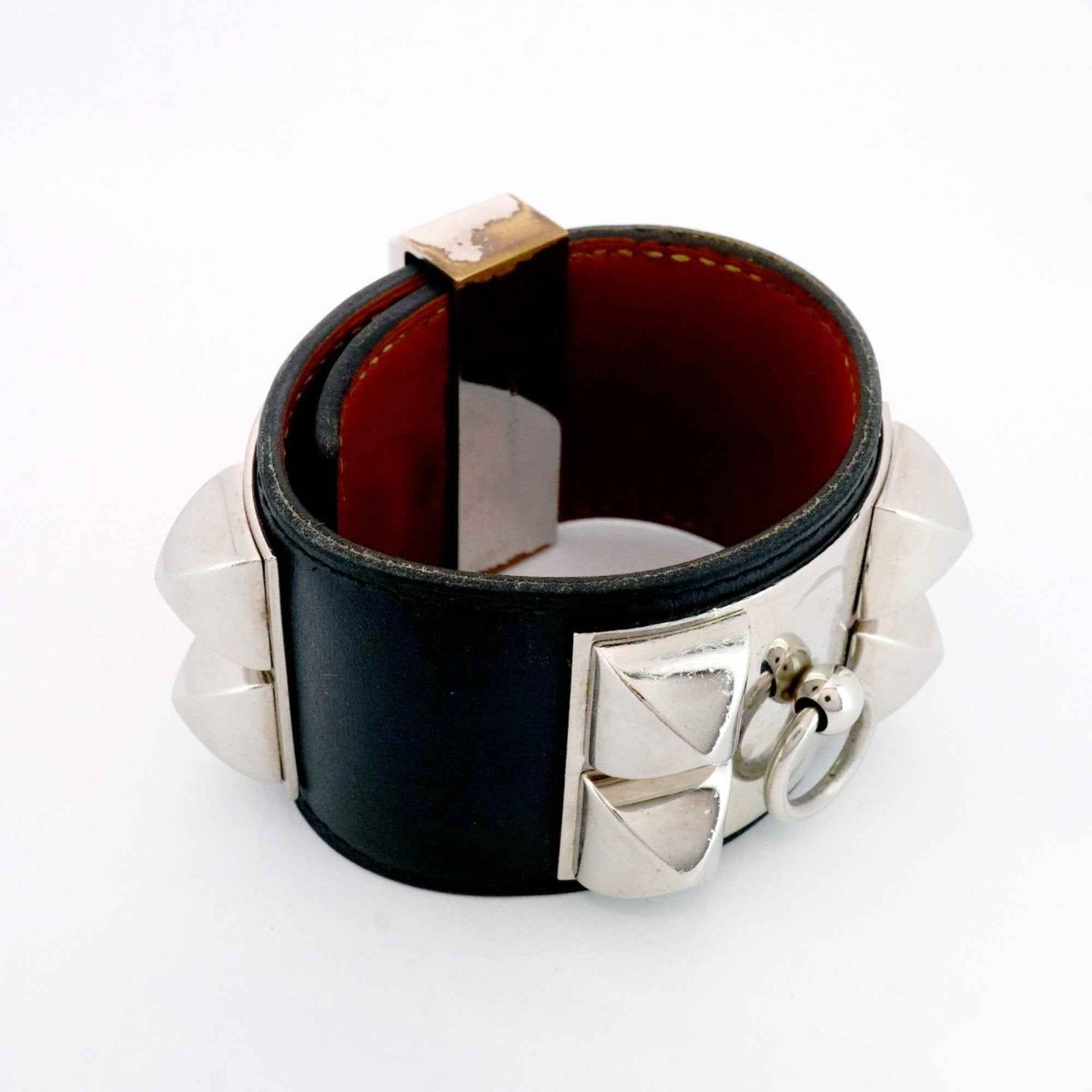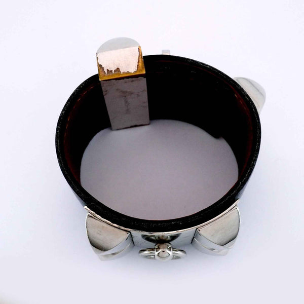 Hermes Collier de Chien Bangle, Metal, Leather, Silver, Black, Women\'s