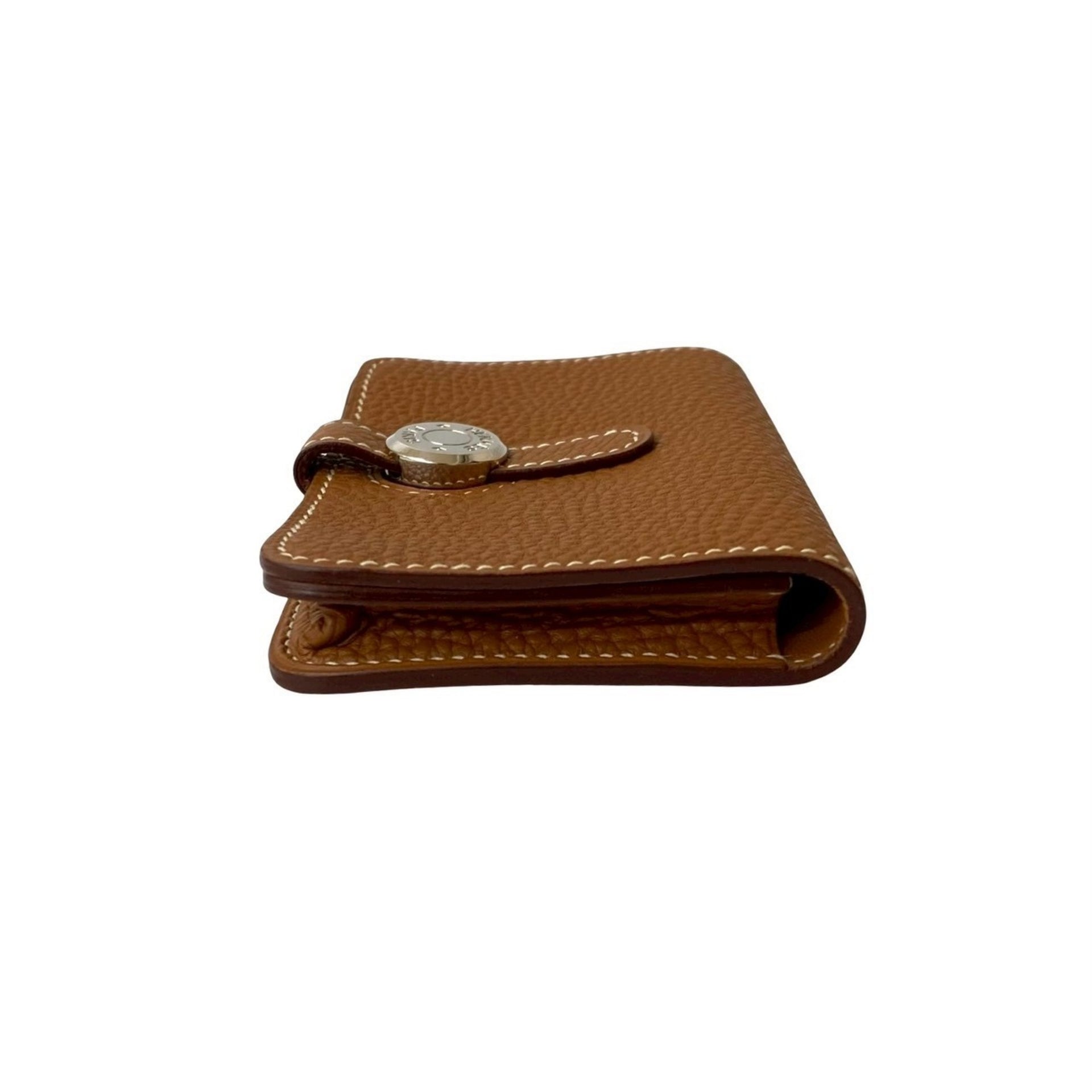 HERMES Dogon Taurillon Clemence Leather Wallet/Coin Purse, Gold, 42183