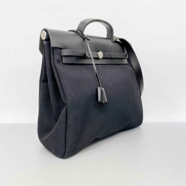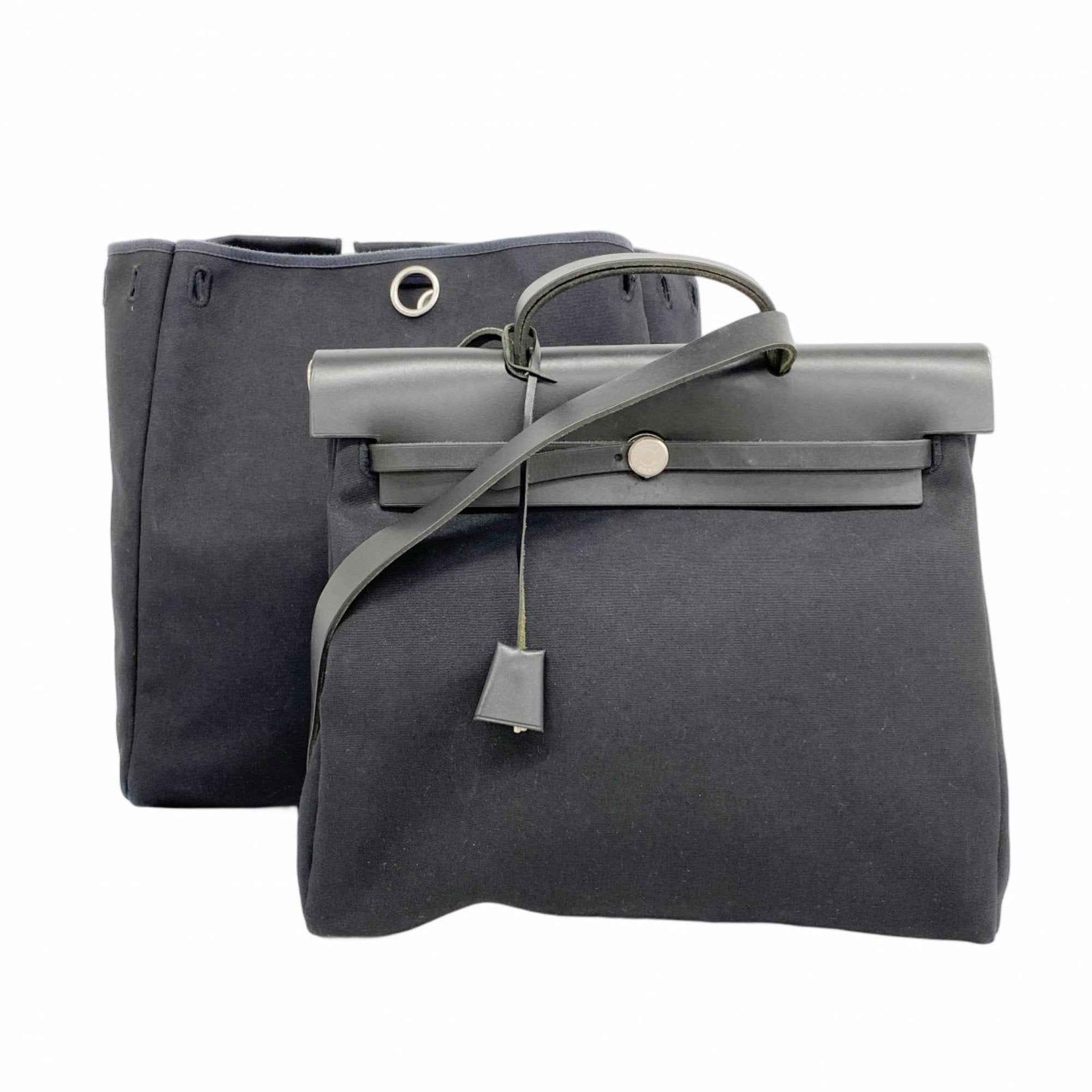 Hermes Hermès Airbag MM Toile Officier Handbag, Black, C Stamp, Women\'s