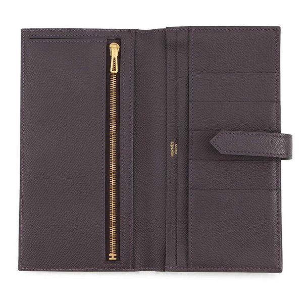 Hermes Hermès Bearn Soufflet Long Wallet, Raisin, Epson, D Stamp, Wallet