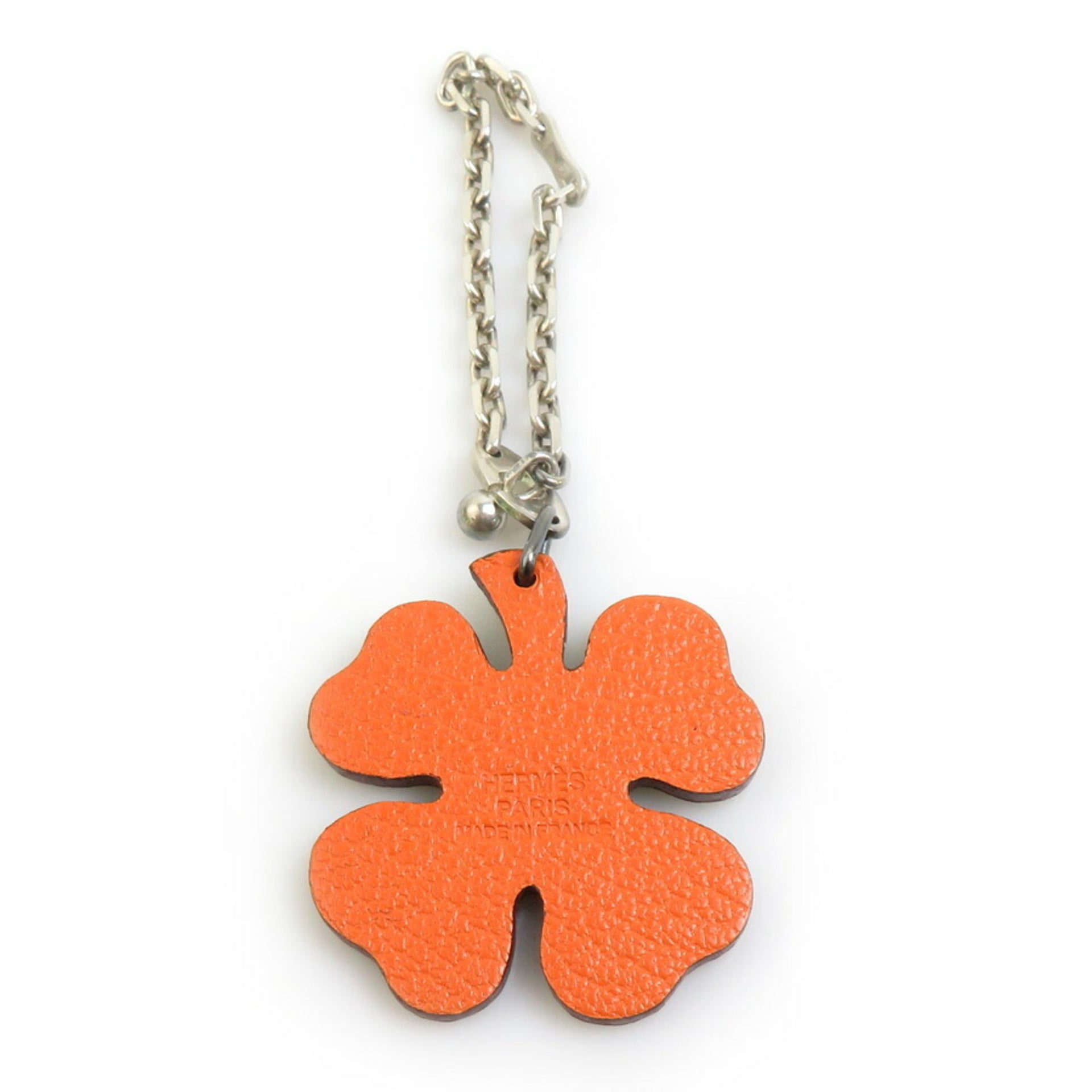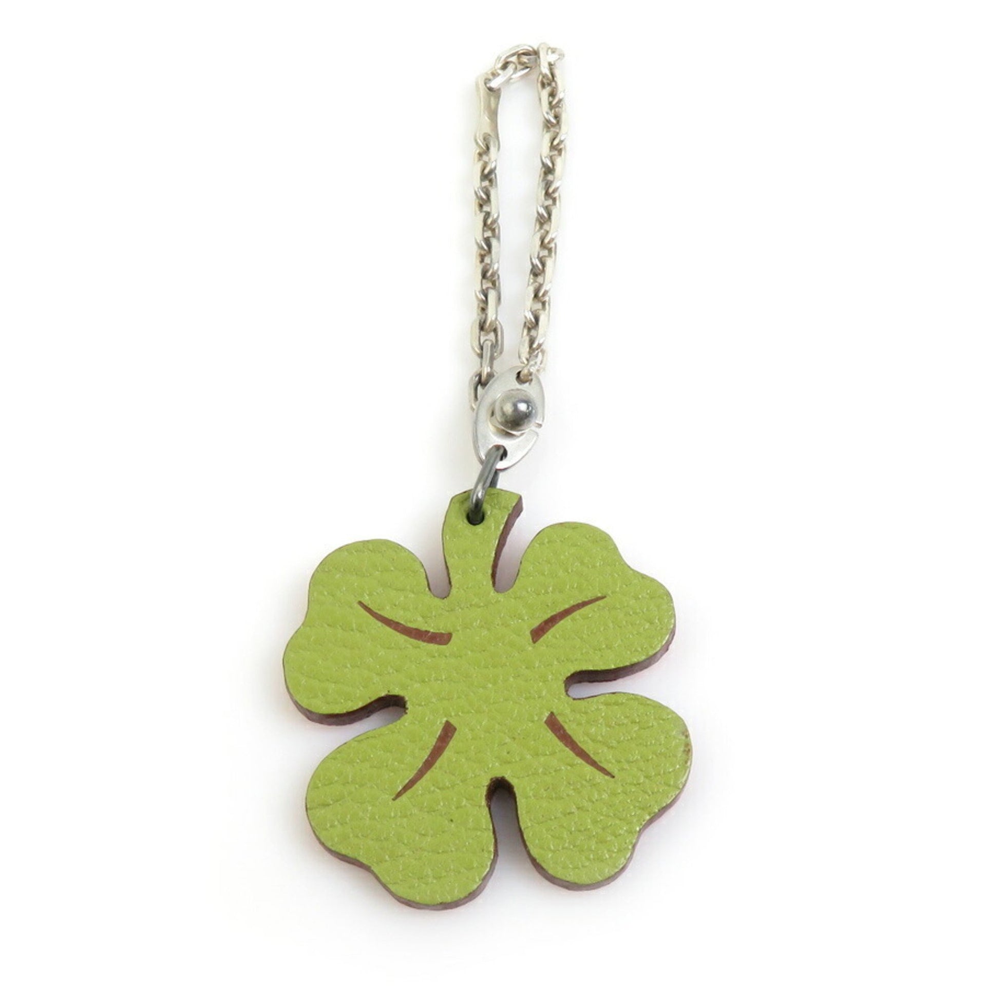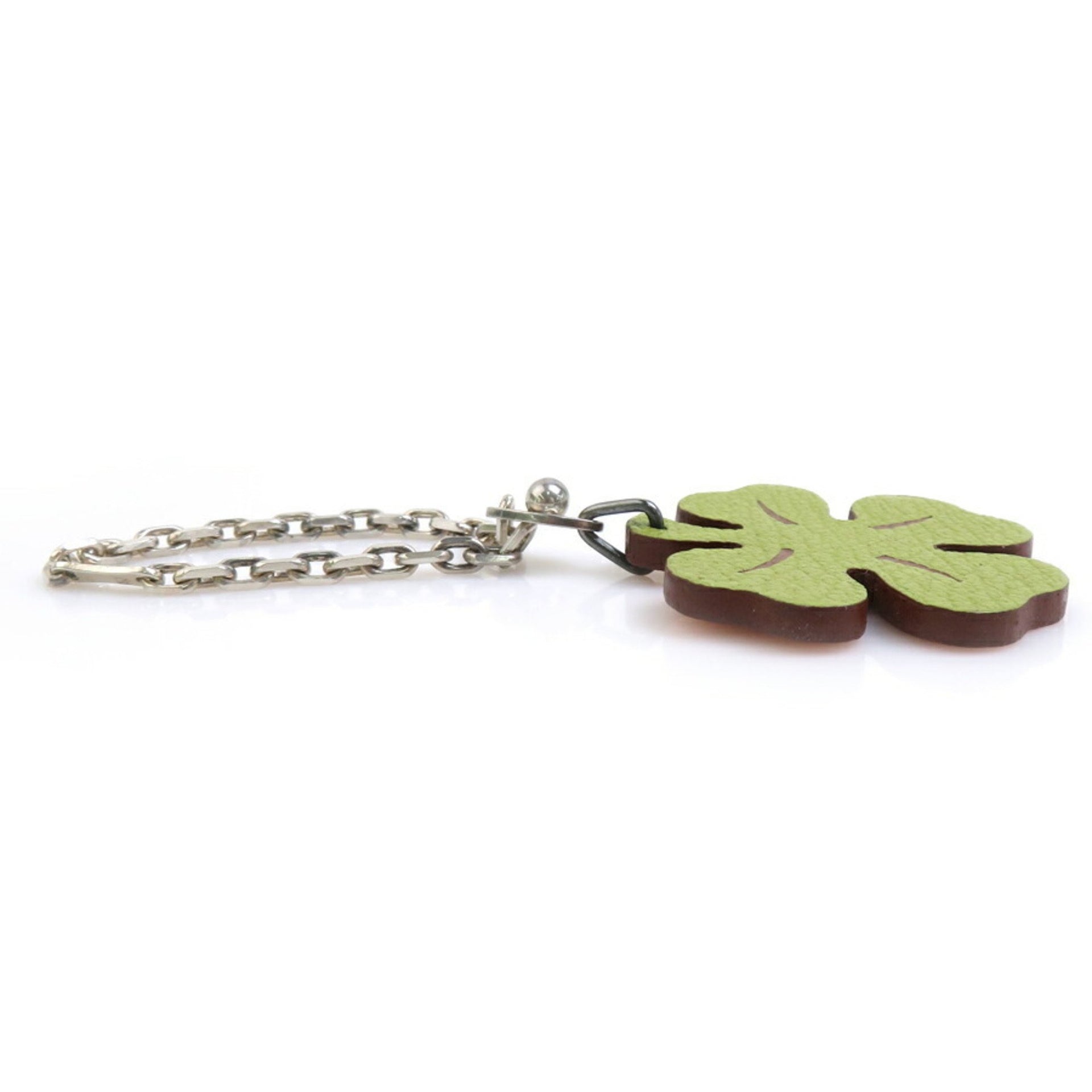 Hermes Hermès Clover Charm Leather 925 Sterling Silver Green Orange Men\'s Women\'s e60790n