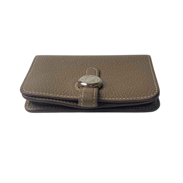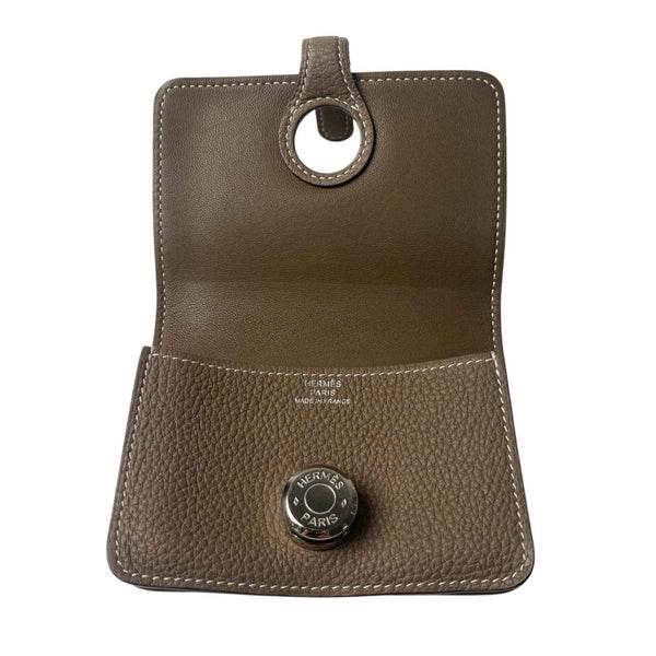 Hermes Hermès Dogon Women\'s Card Case, Etoupe Leather, Taurillon Z Stamp