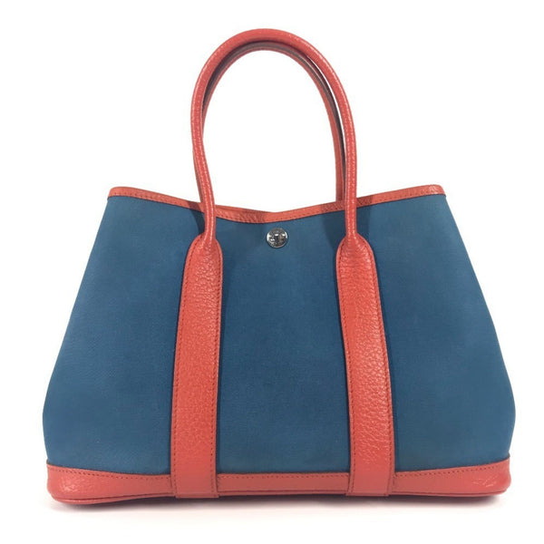 HERMES Hermes Garden Party TPM Bag Handbag Bicolor Tote Leather Canvas Women\'s Blue
