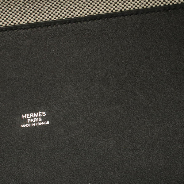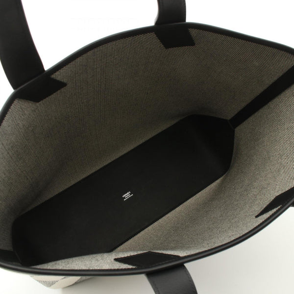 Hermes Hermès H Ambier GM Tote Bag, Toile H, Swift Leather, Women\'s, White and Black