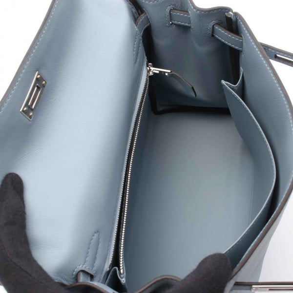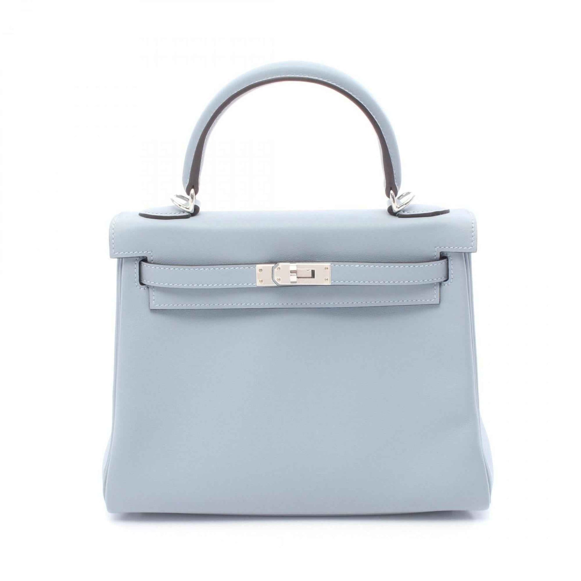 Hermes Hermès Kelly 25 handbag in calfskin leather (cowhide) with Swift leather, blue for women