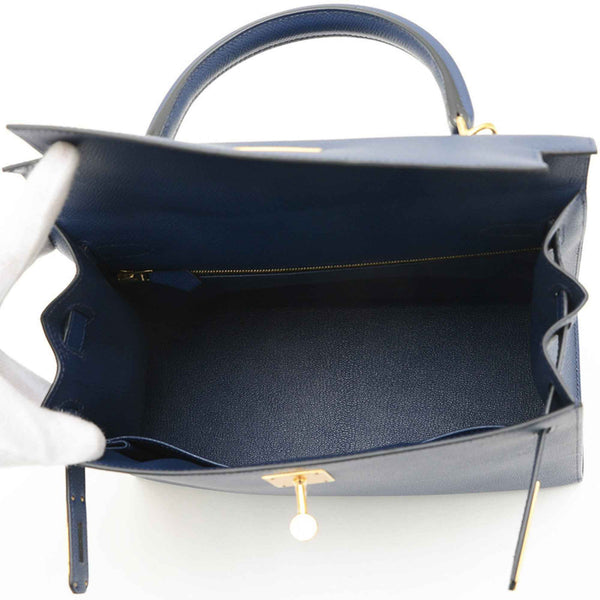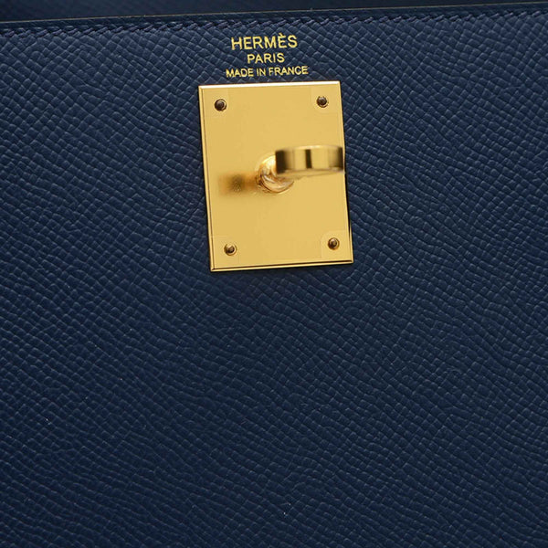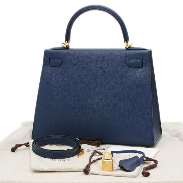 Hermes Hermès Kelly 28 Handbag, Outer Stitching, Epsom, Blue Navy, Gold Hardware, Double Stamp