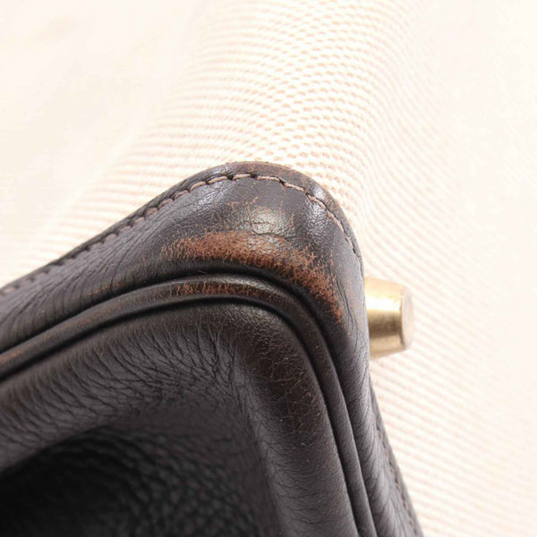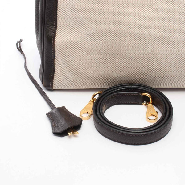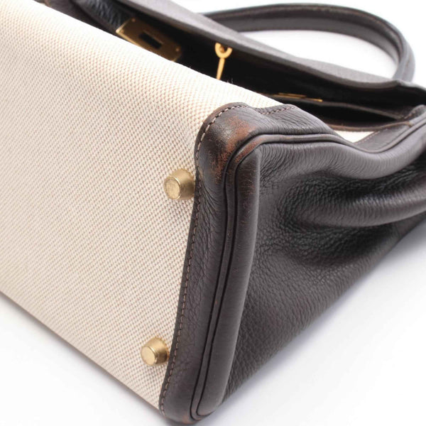 Hermes Hermès Kelly 32 handbag, canvas and leather, Toile H Togo H, women\'s, beige brown.