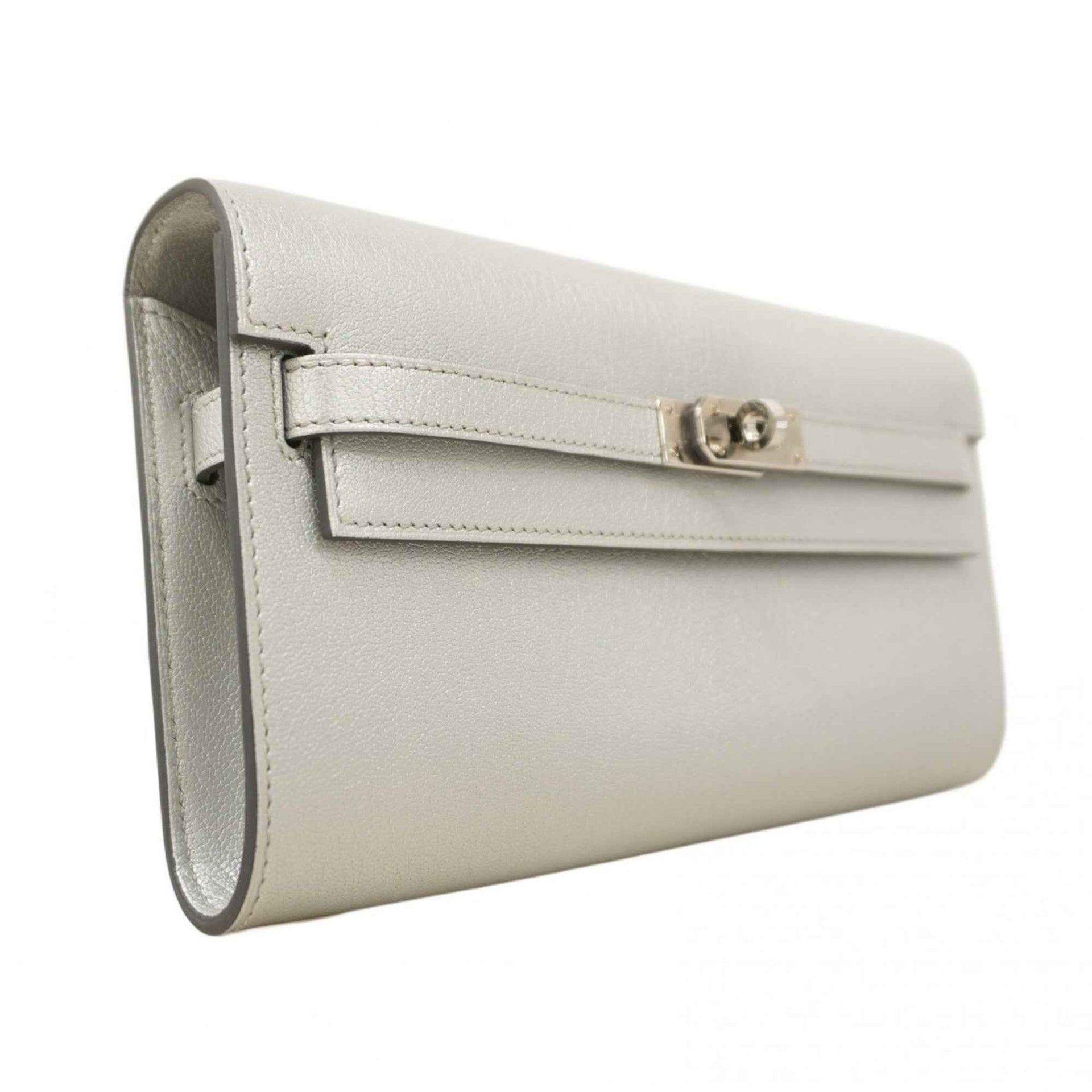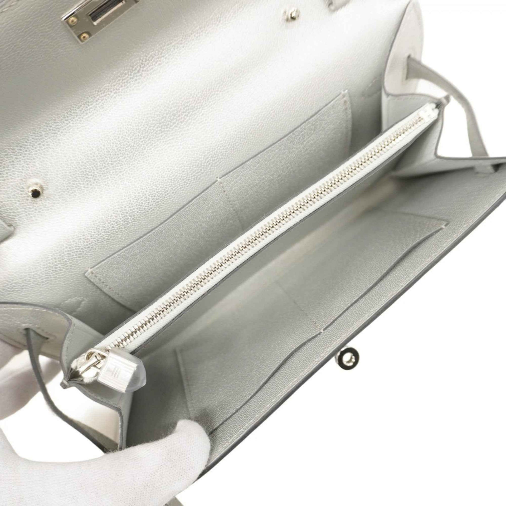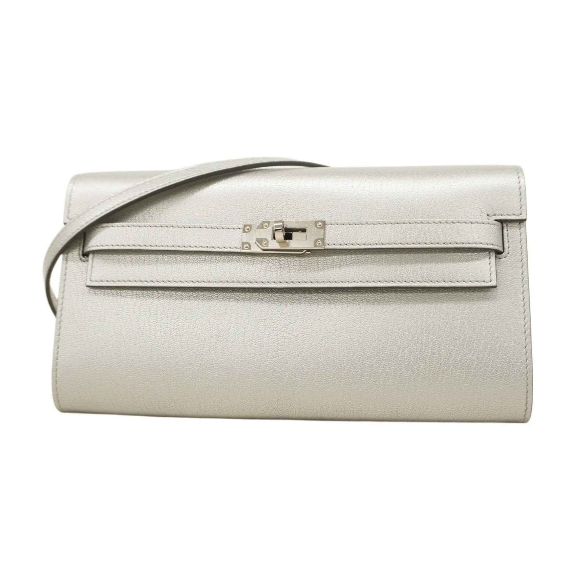 Hermes Hermès Kelly Long To-Go Shoulder Wallet, Chevre Shamquila, Argent, K Stamp, Women\'s, P1463895