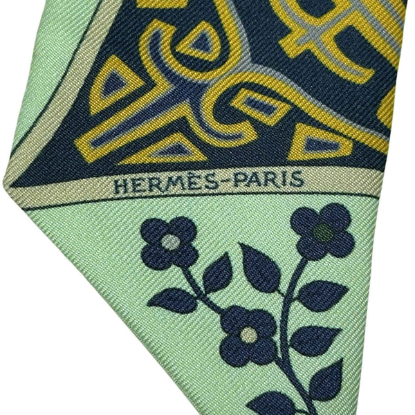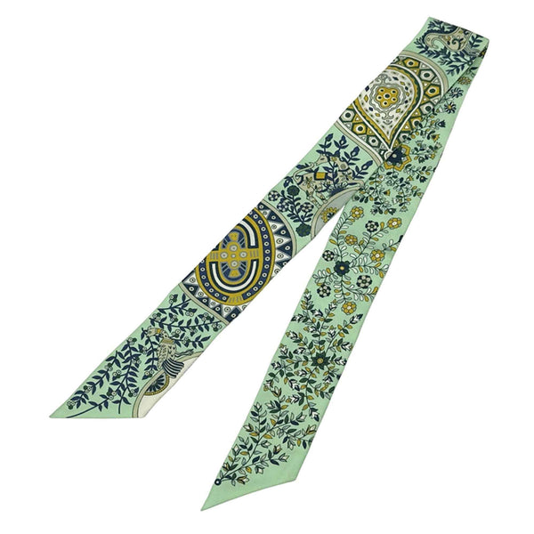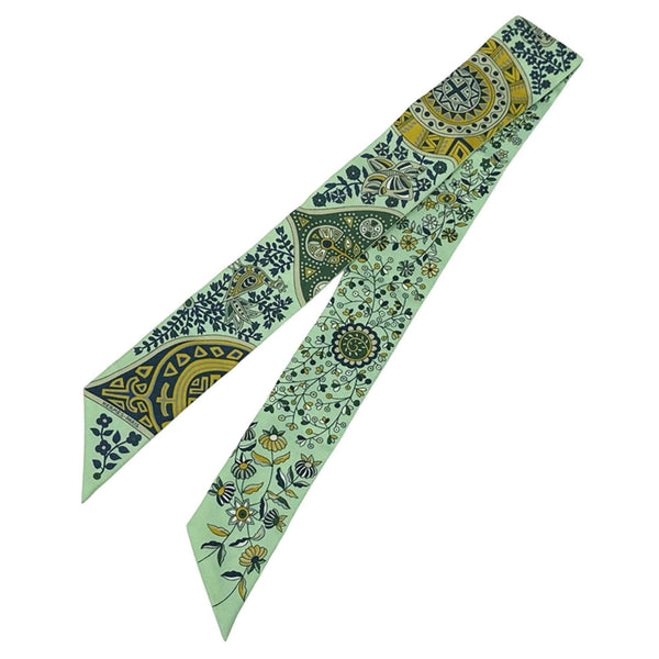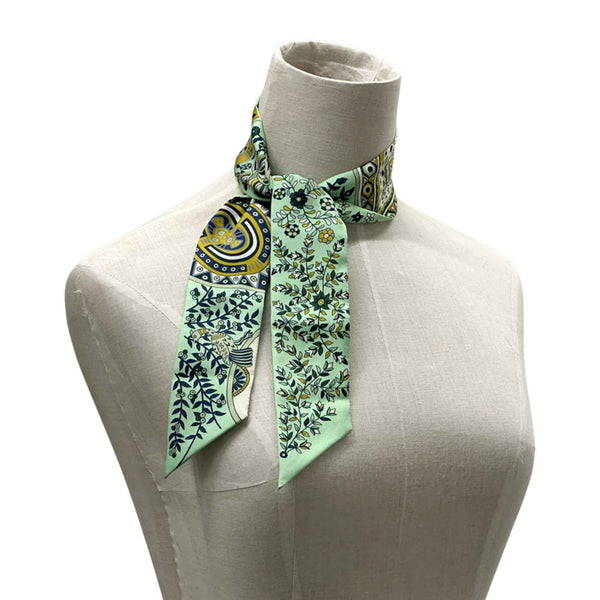 Hermes Hermès L\'Arbre de Vie Tree of Life Twilly Scarf, Women\'s Silk, Green, Yellow, Animal, Plant