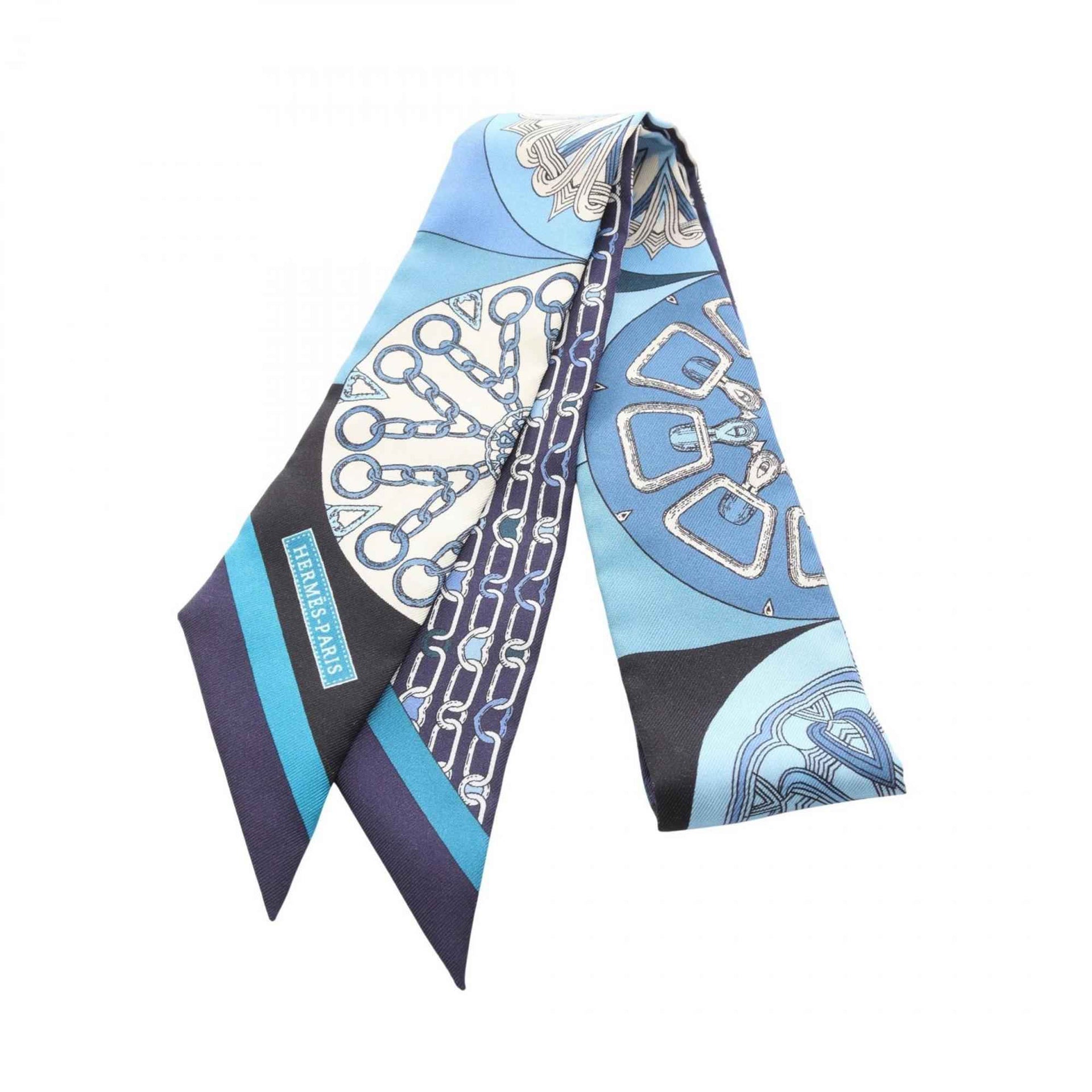 Hermes Hermès L\'EFFET KALEIDOSCOPE Twilly Silk Scarf for Women in Blue and Navy