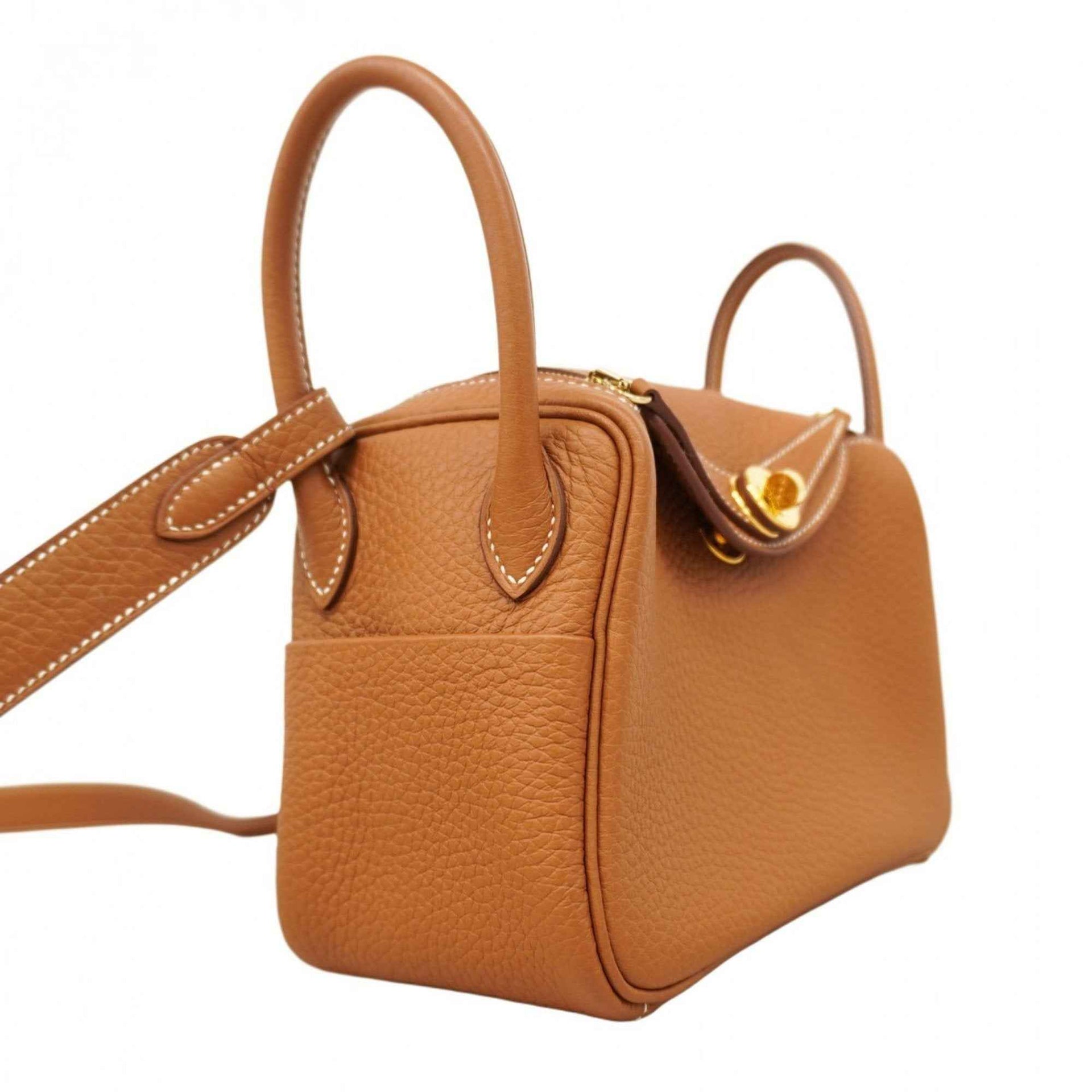 Hermes Hermès Lindy Mini Handbag, Taurillon Clemence Leather, Gold, B Stamp, 2-Way Bag, Women\'s