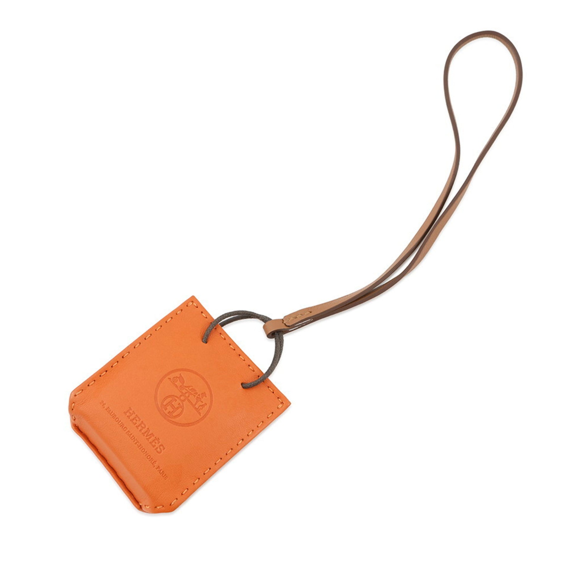 Hermes Hermès Shopper Bag Charm, Sac Orange, Feu Gold, Lambskin, Y Stamp