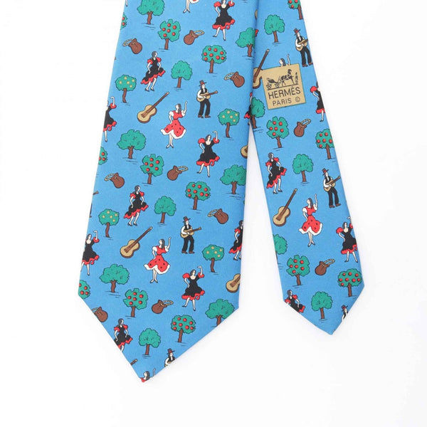 Hermes Hermès silk tie for men in multicolored blue.
