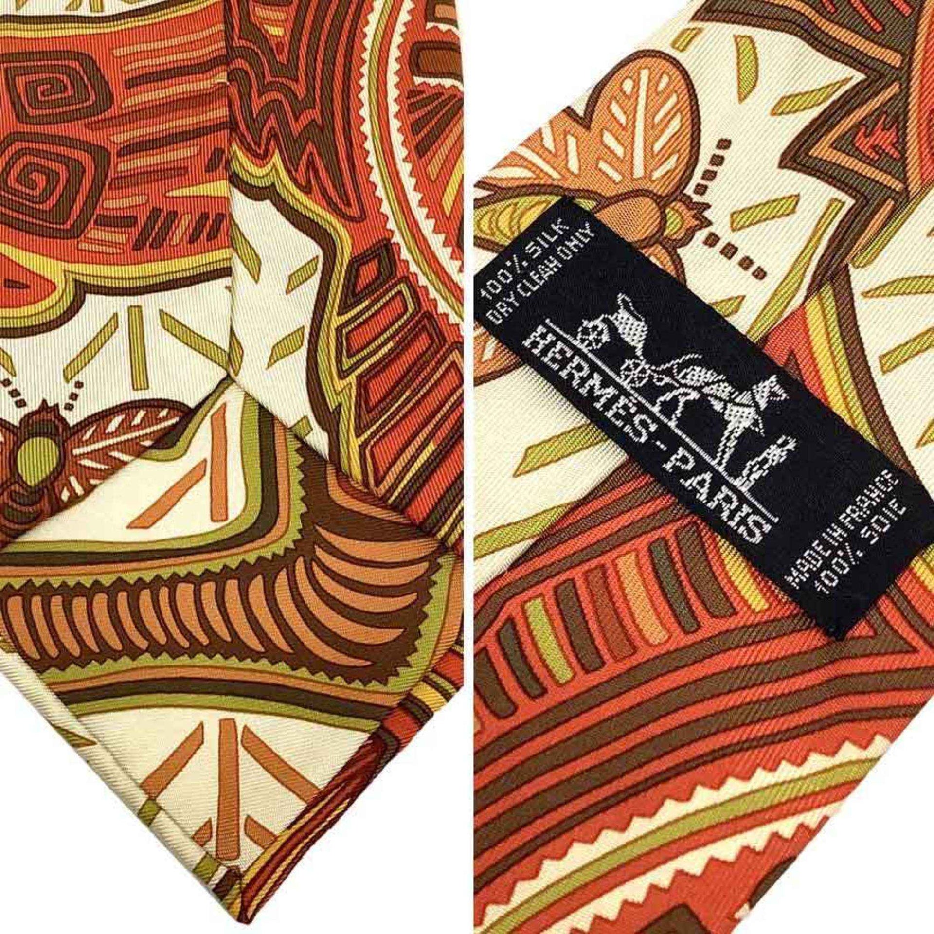 Hermes HERMES Tie CRAVAT EN CARRE LEGENDE KUNA PEUPLE DE PANAMA Legend of the Kuna People Panama 100% Silk Beige x Orange Men\'s