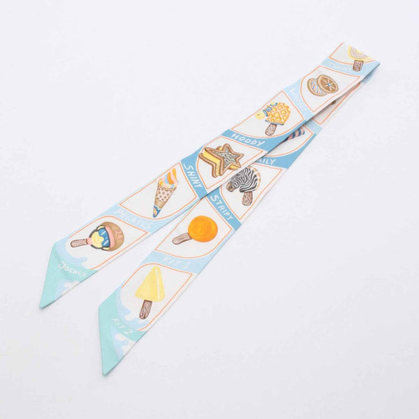 Hermes Hermès Twilly FUNNY ICE CREAM Silk Scarf for Women in Blue, White, and Multicolor