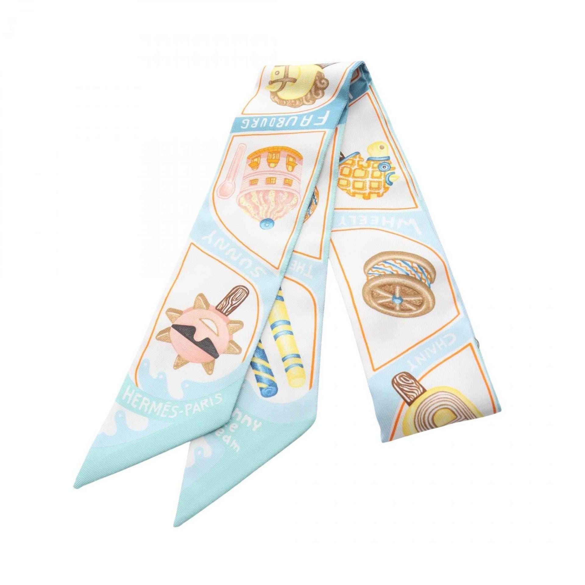 Hermes Hermès Twilly Funny Ice Cream Silk Scarf for Women in Multicolor Blue
