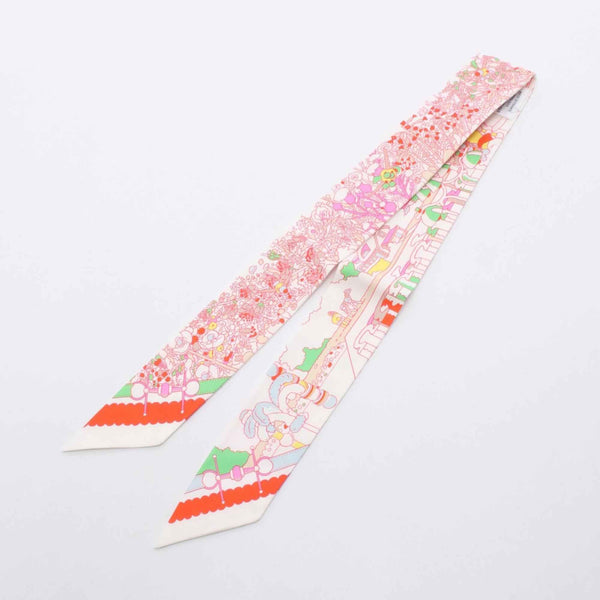 Hermes Hermès Twilly Pony Pit Stop Silk Scarf for Women, White, Red, and Multicolor